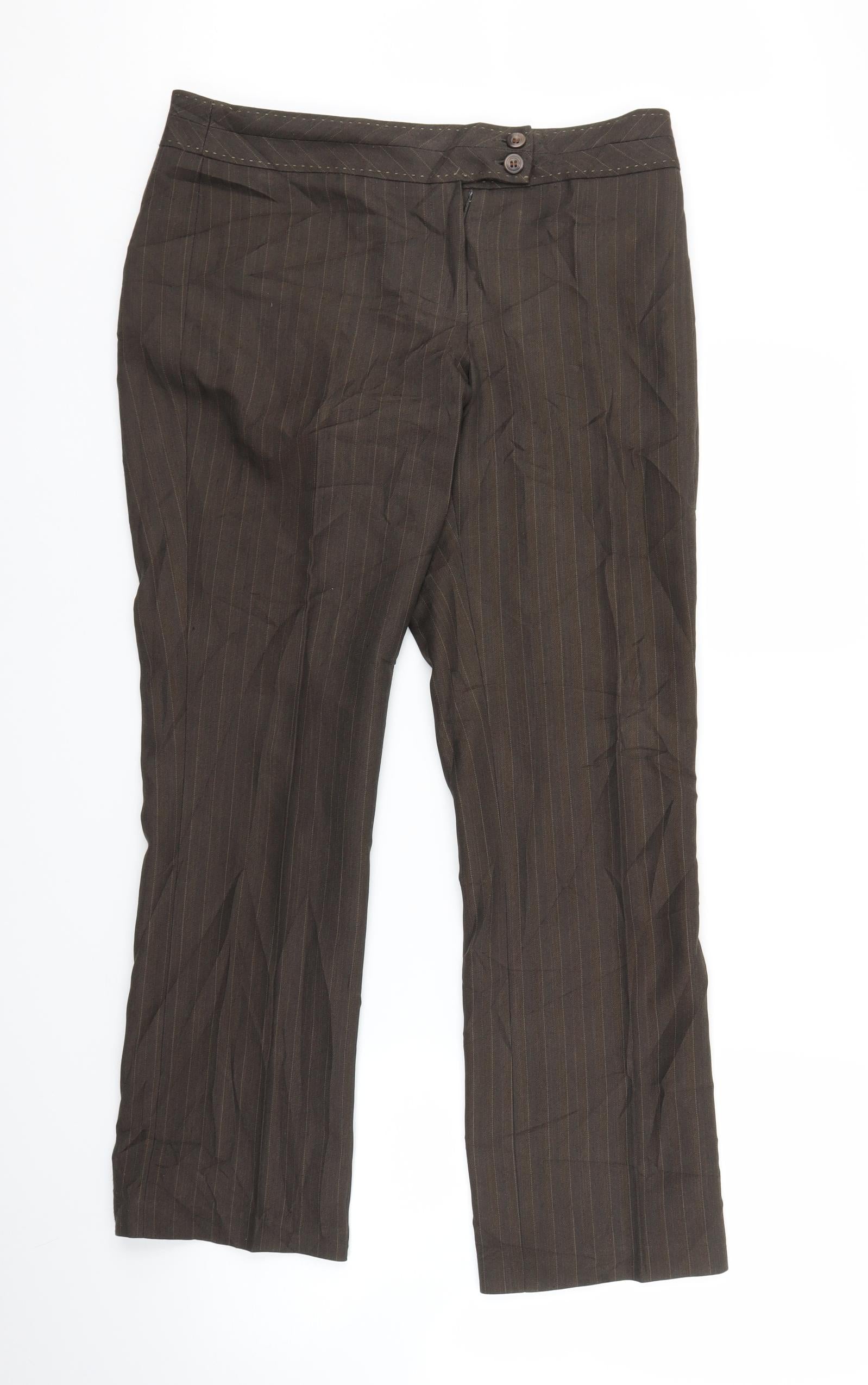F&F Womens Brown Striped Trousers Size 12 L28 in