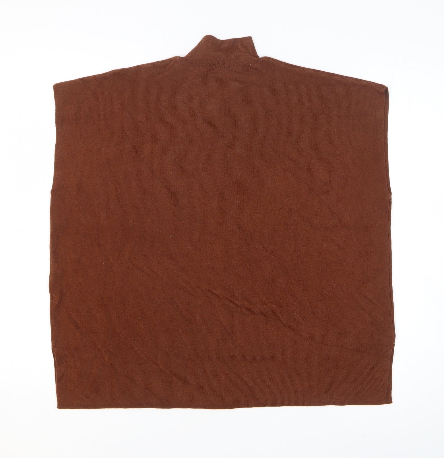 F&F Womens Brown Viscose Basic T-Shirt Size S High Neck
