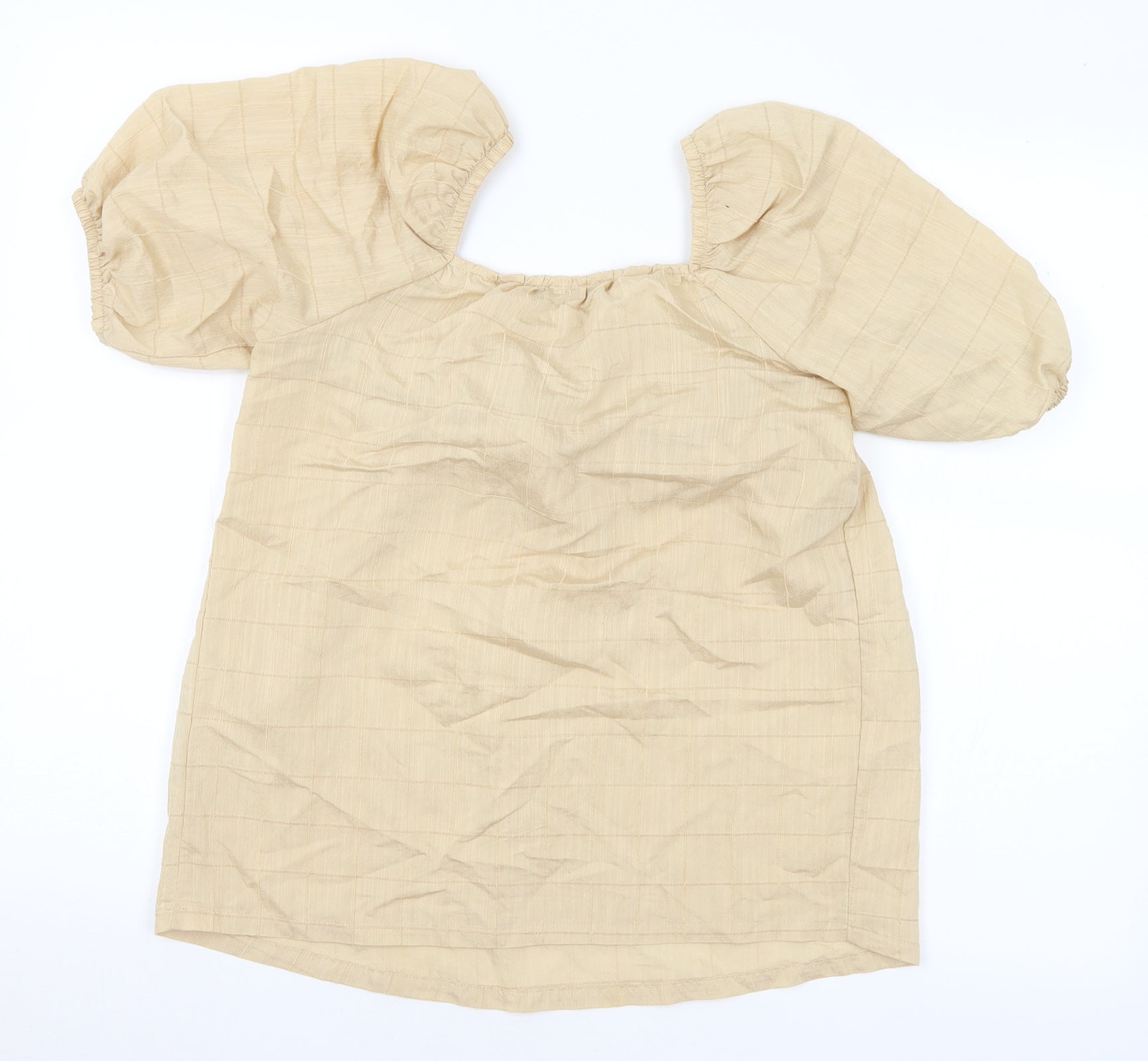 F&F Womens Gold Check Viscose Basic Blouse Size 6 Off the Shoulder