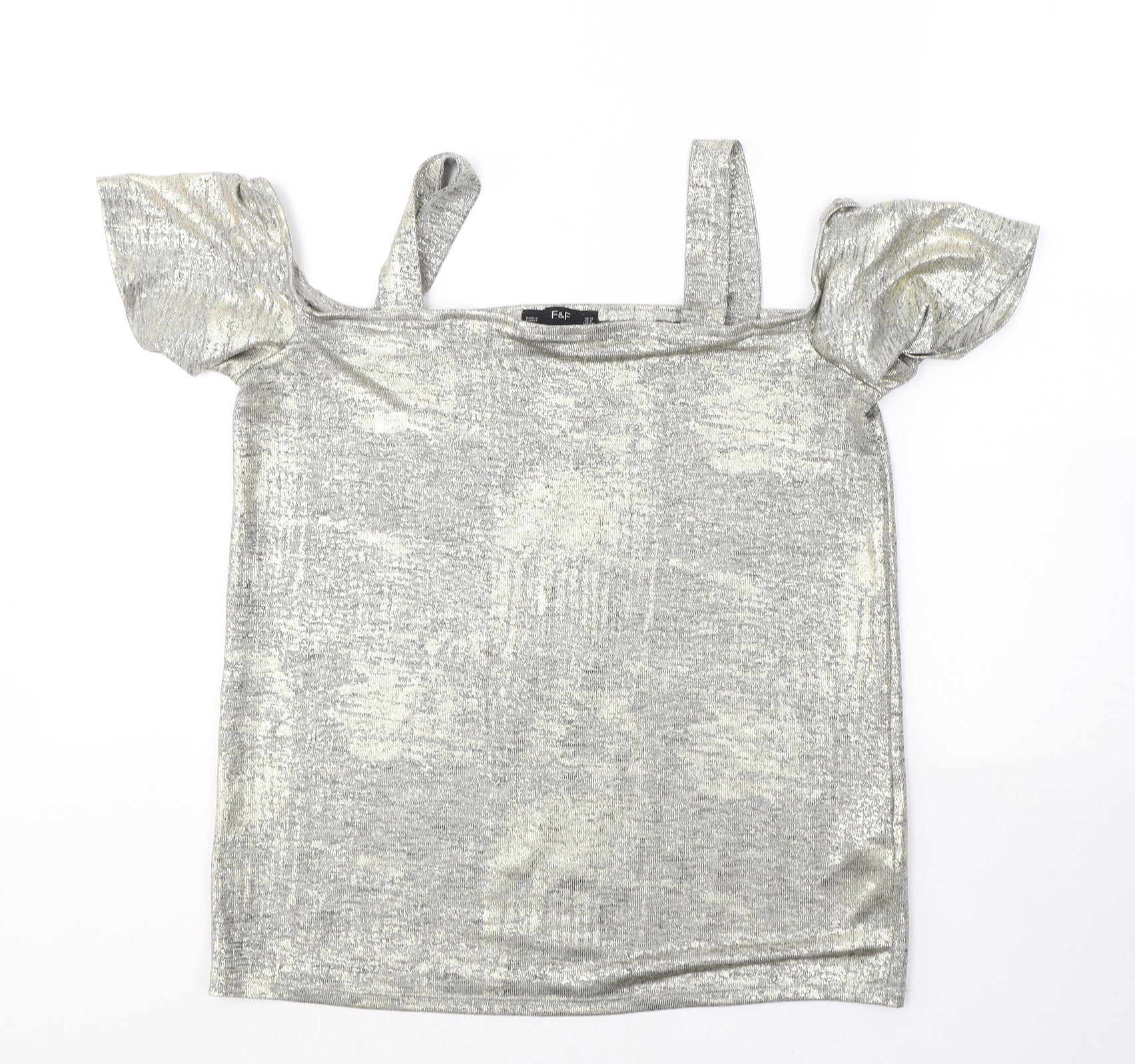 F&F Womens Gold Polyester Basic T-Shirt Size 12 Square Neck