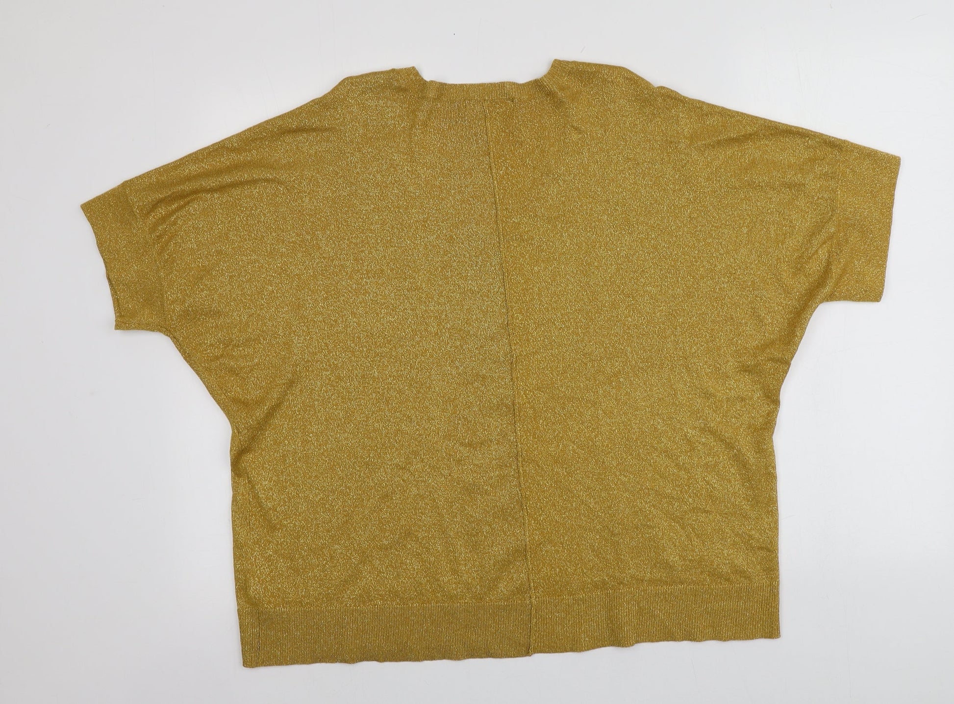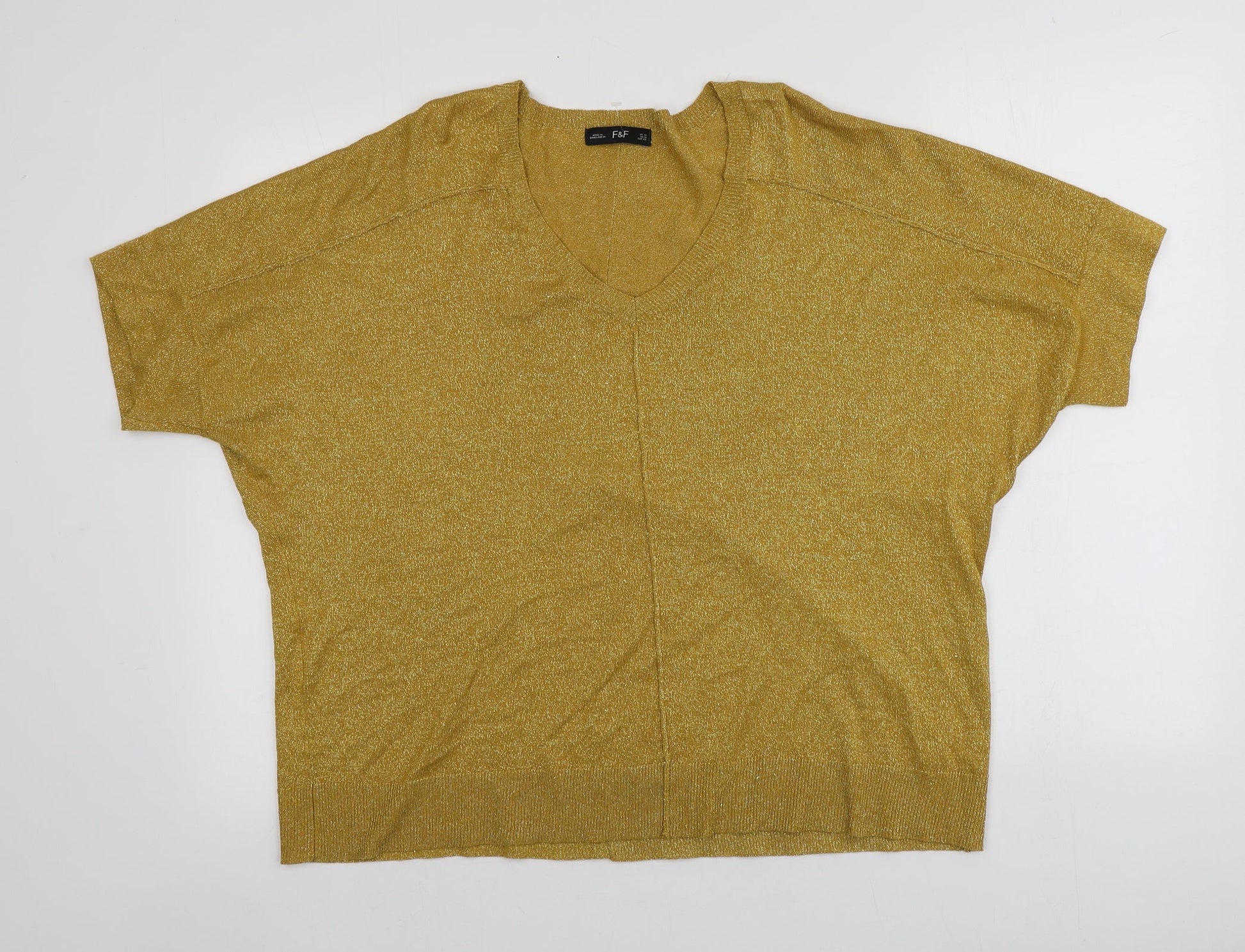 F&F Womens Gold V-Neck Viscose Pullover Jumper Size 14