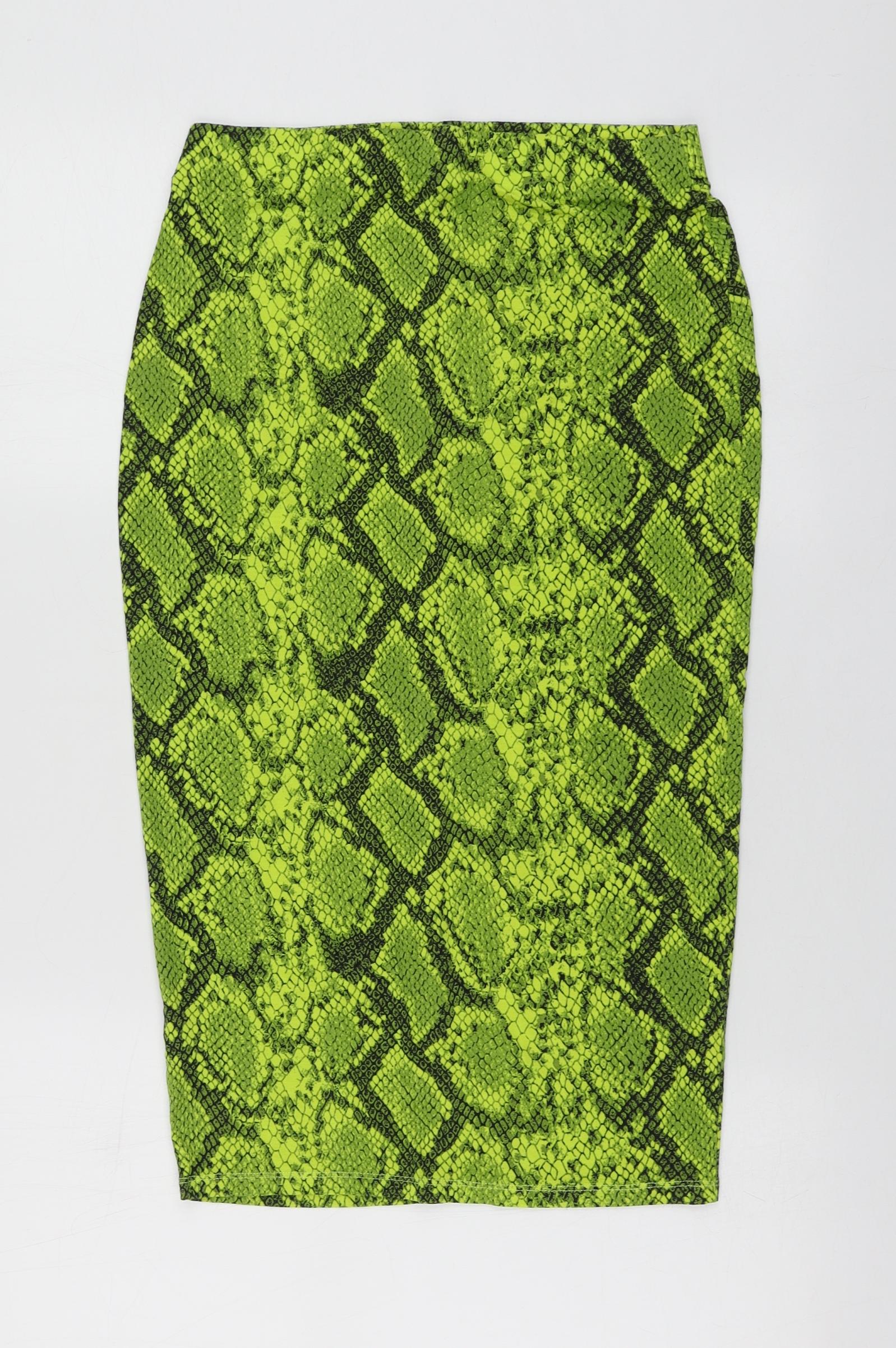 F&F Womens Green Animal Print Viscose A-Line Skirt Size 8