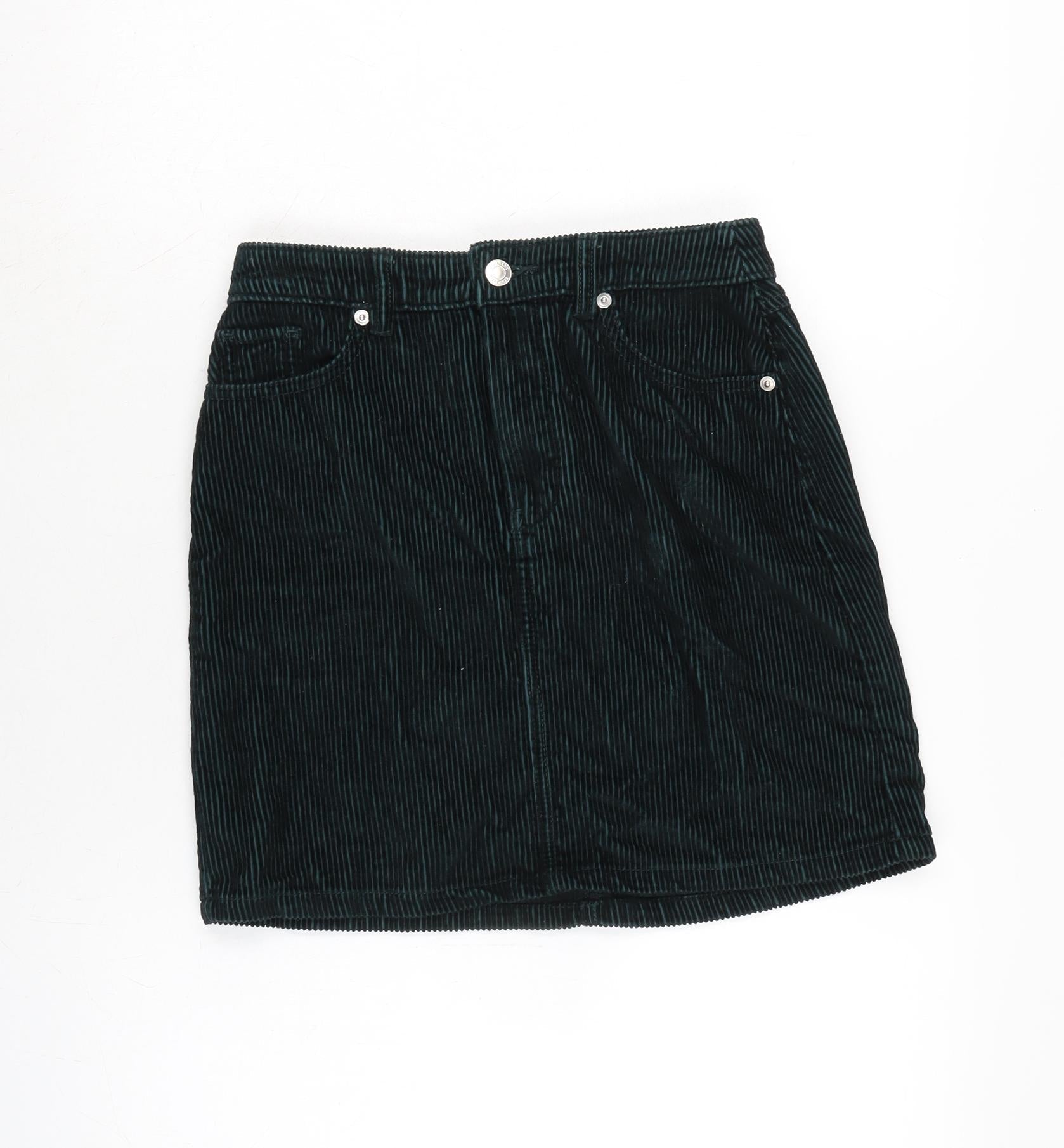 F&F Womens Green Cotton A-Line Skirt Size 6 Zip
