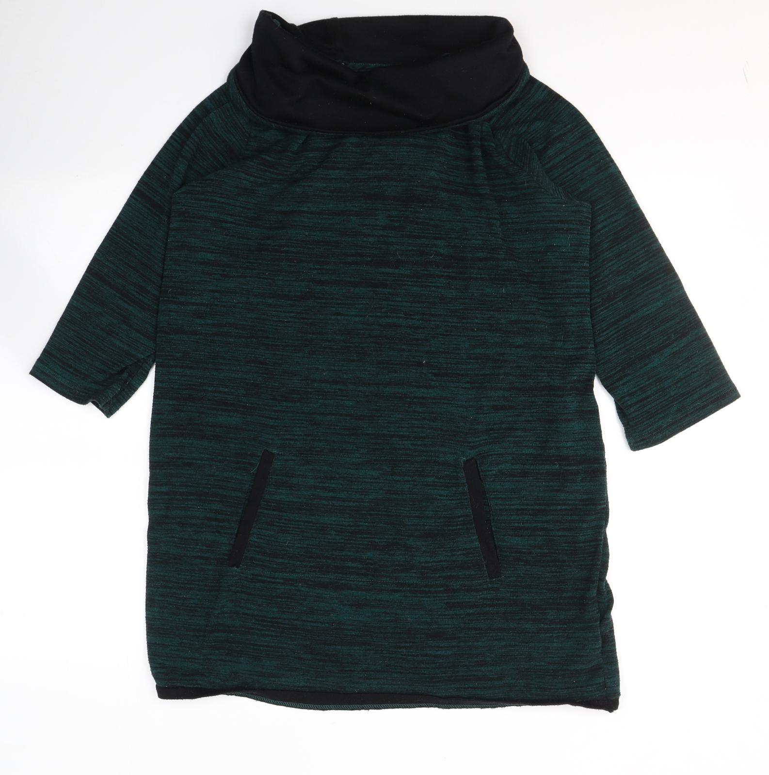F&F Womens Green Striped Polyester Tunic T-Shirt Size 16 Roll Neck