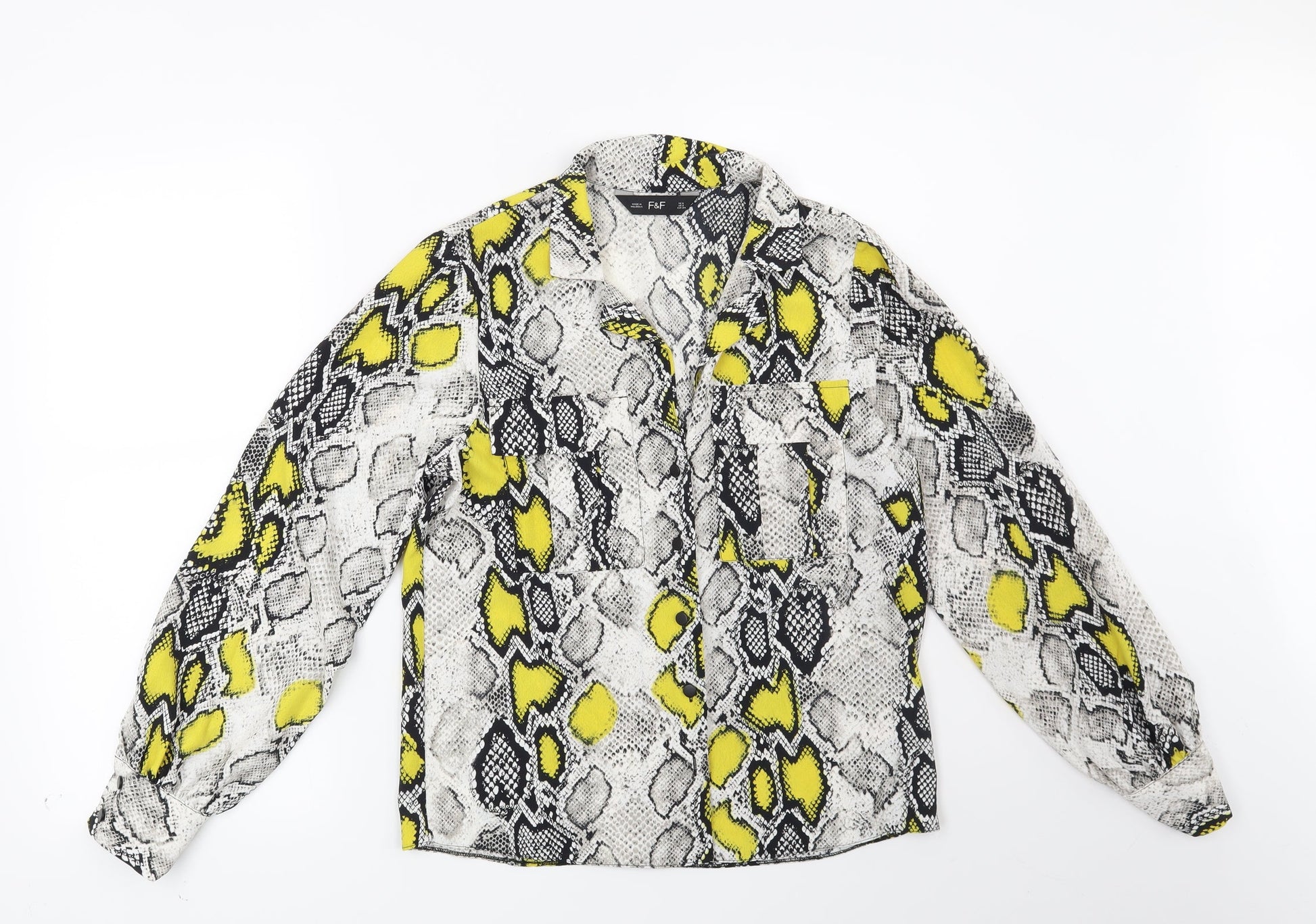 F&F Womens Grey Animal Print Basic Blouse Size 6