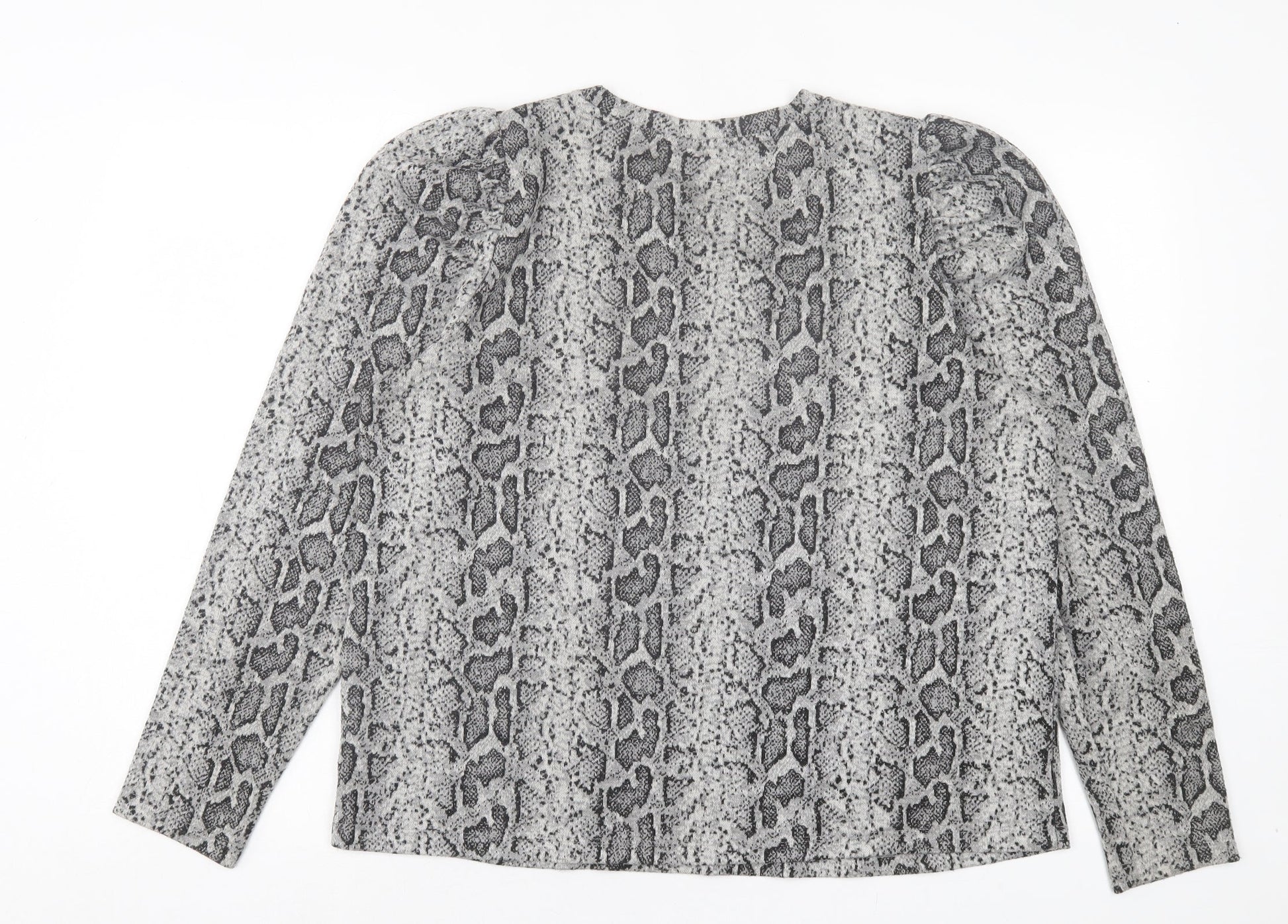 F&F Womens Grey Animal Print Polyester Basic T-Shirt Size 10 Crew Neck - Snake Print