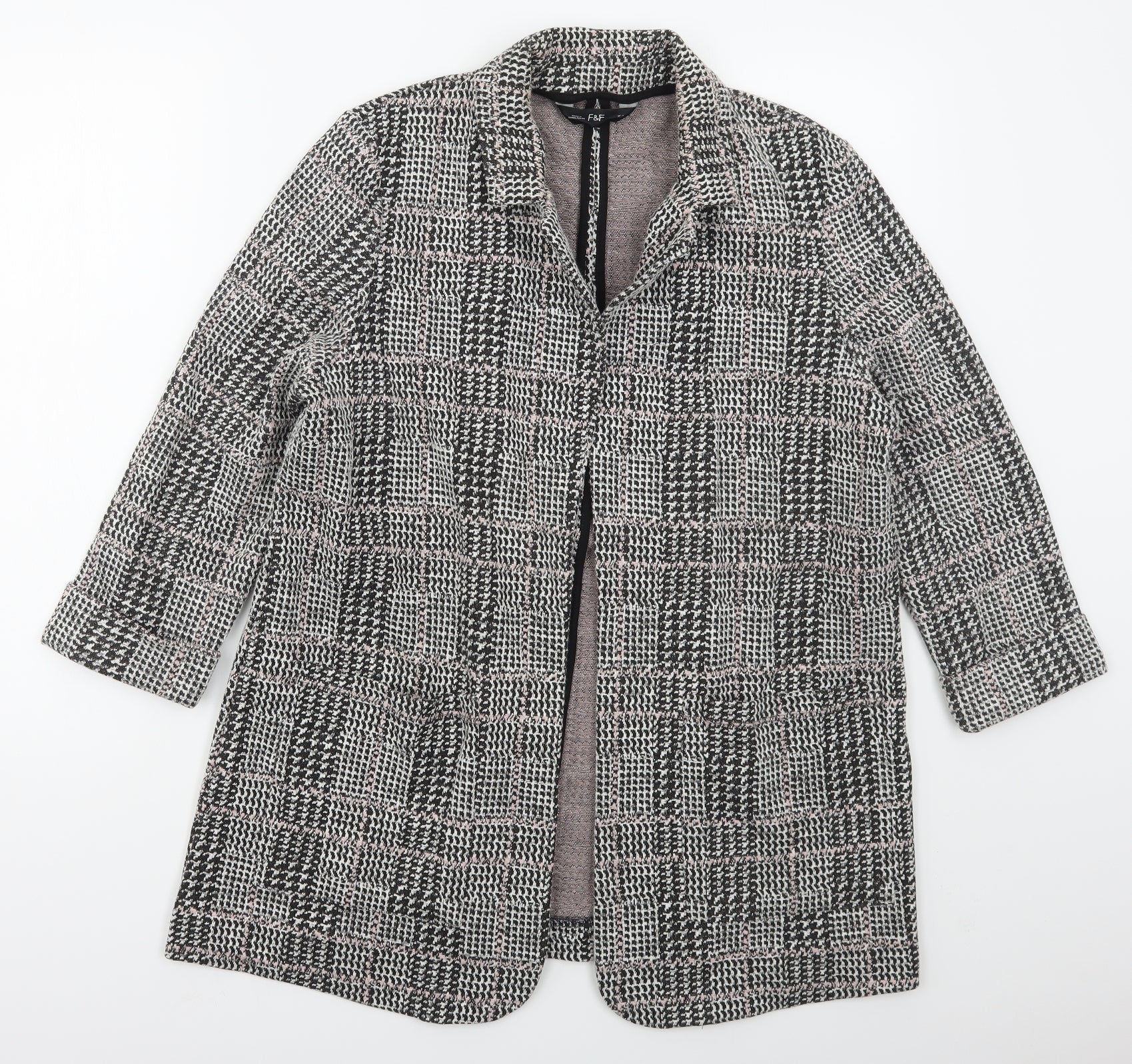 F&F Womens Grey Check Jacket Coatigan Size 14 - Pink