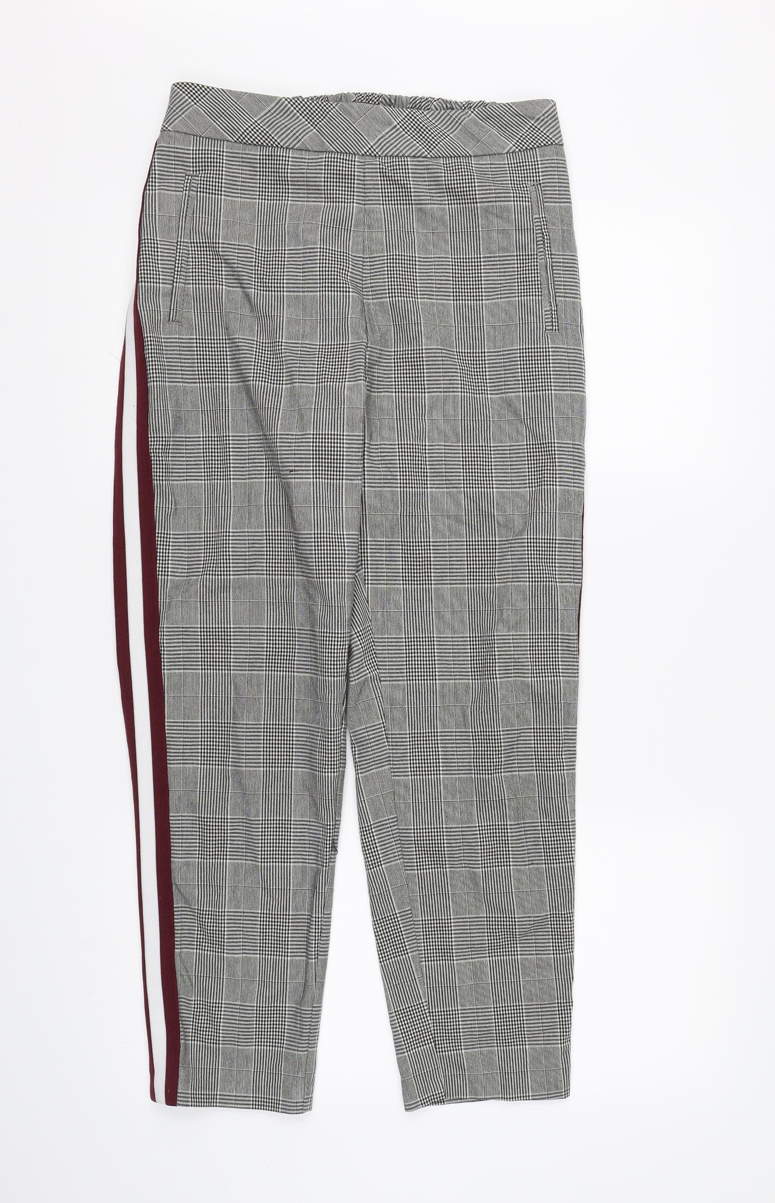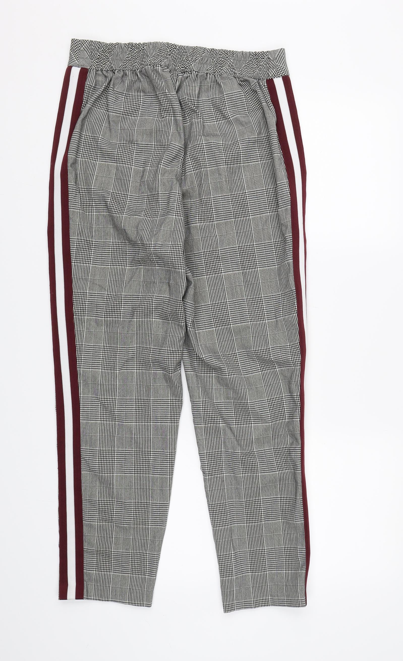 F&F Womens Grey Check Rayon Trousers Size 10 L26 in