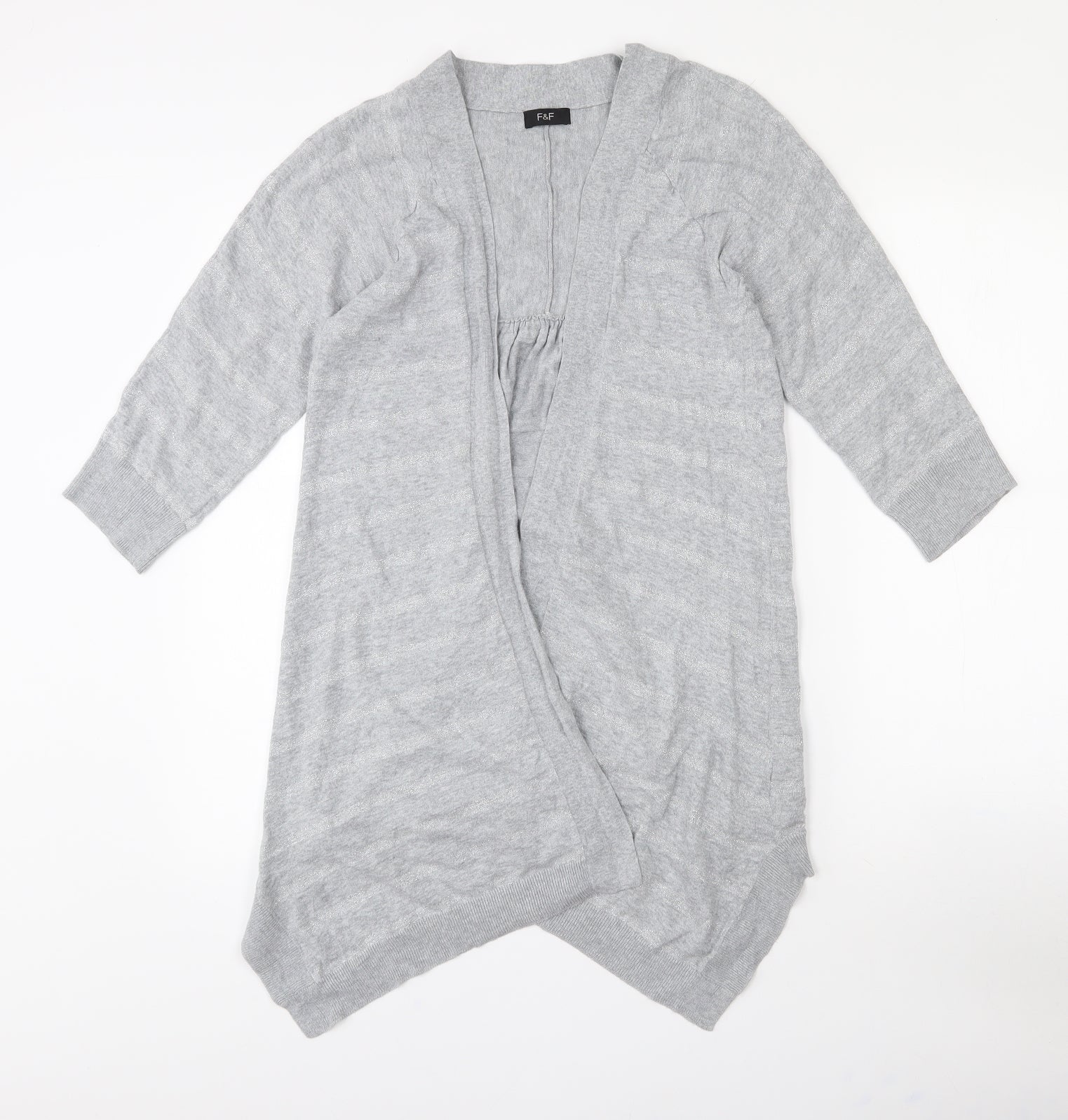 F&F Womens Grey Collared Striped Cotton Cardigan Jumper Size 12