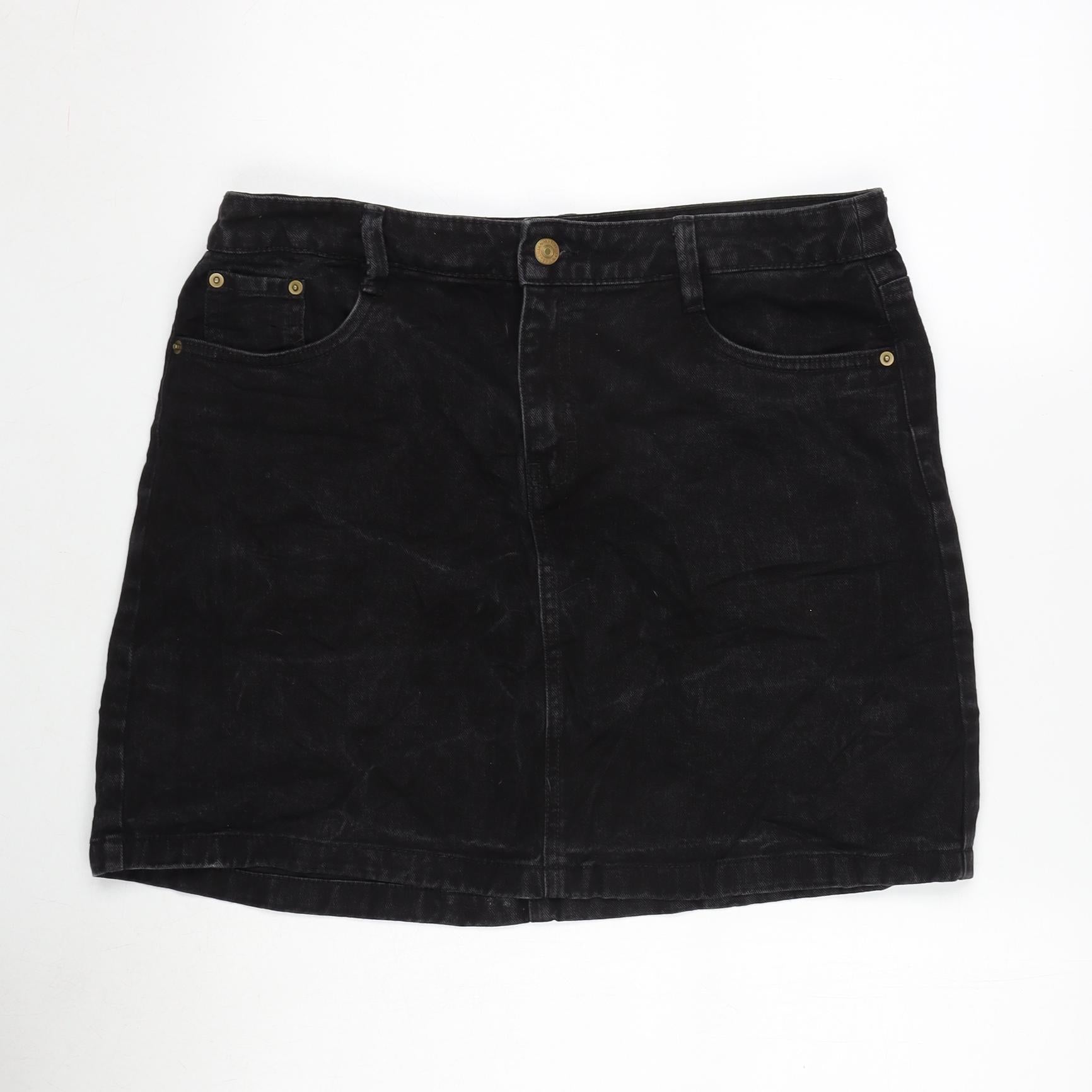 F&F Womens Grey Cotton A-Line Skirt Size 14 Zip