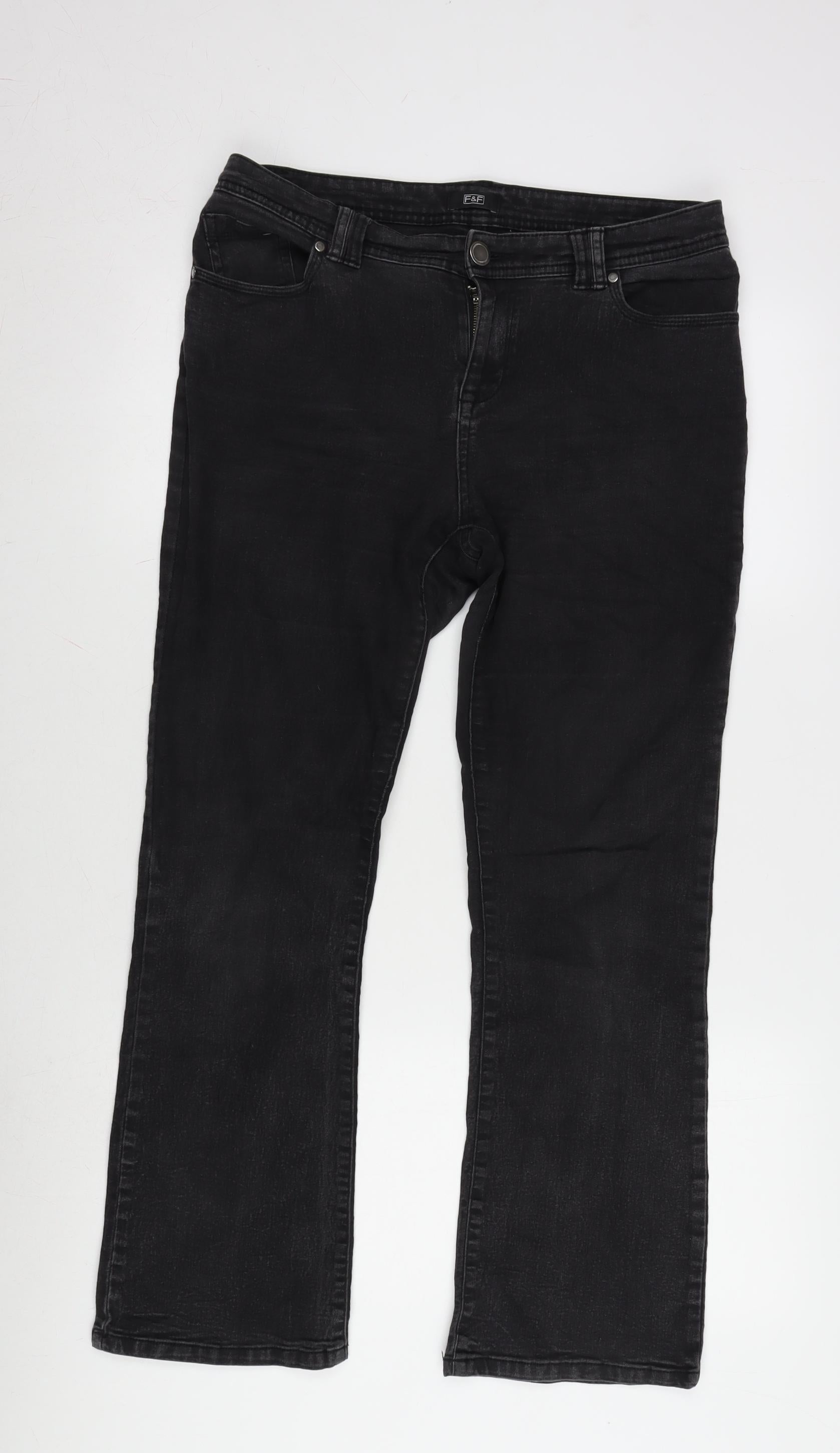 F&F Womens Grey Cotton Blend Bootcut Jeans Size 34 in L28 in Regular Zip