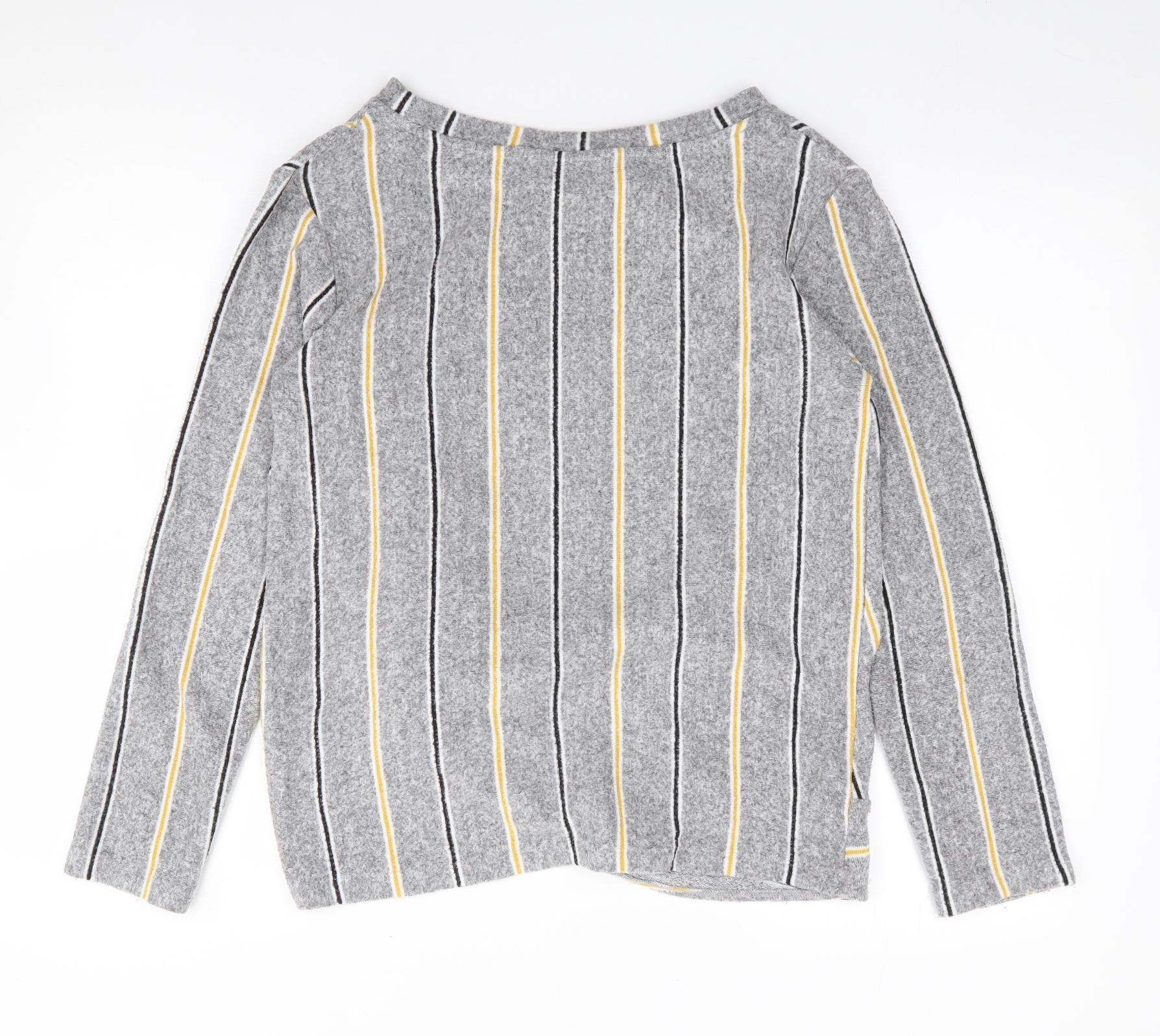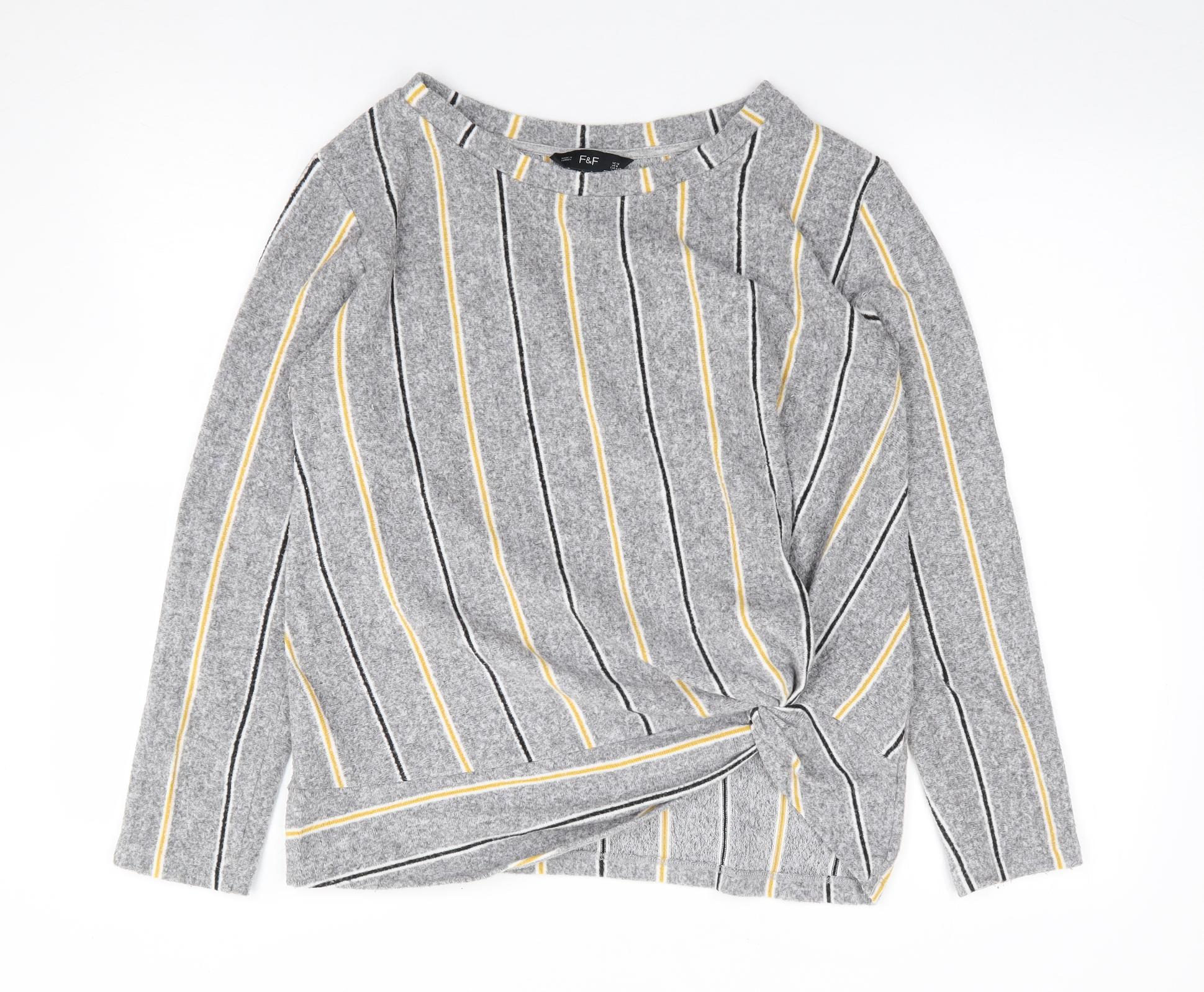 F&F Womens Grey Crew Neck Striped Polyester Pullover Jumper Size 12