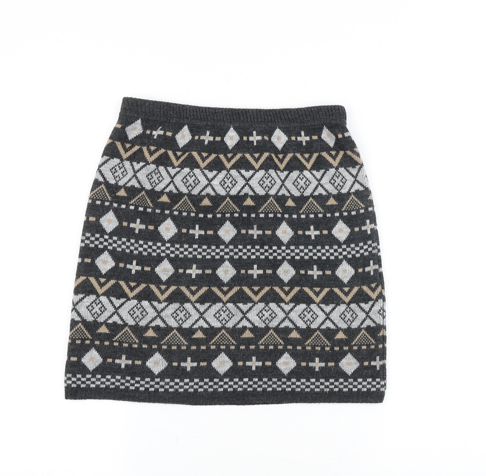 F&F Womens Grey Geometric Acrylic A-Line Skirt Size 8