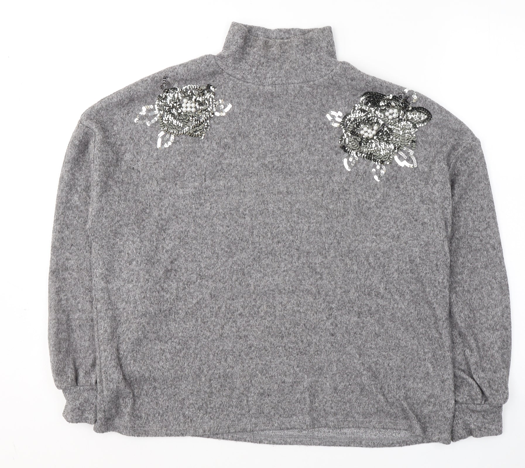 F&F Womens Grey High Neck Acrylic Pullover Jumper Size 8