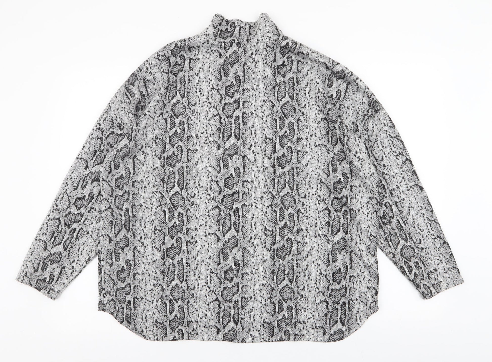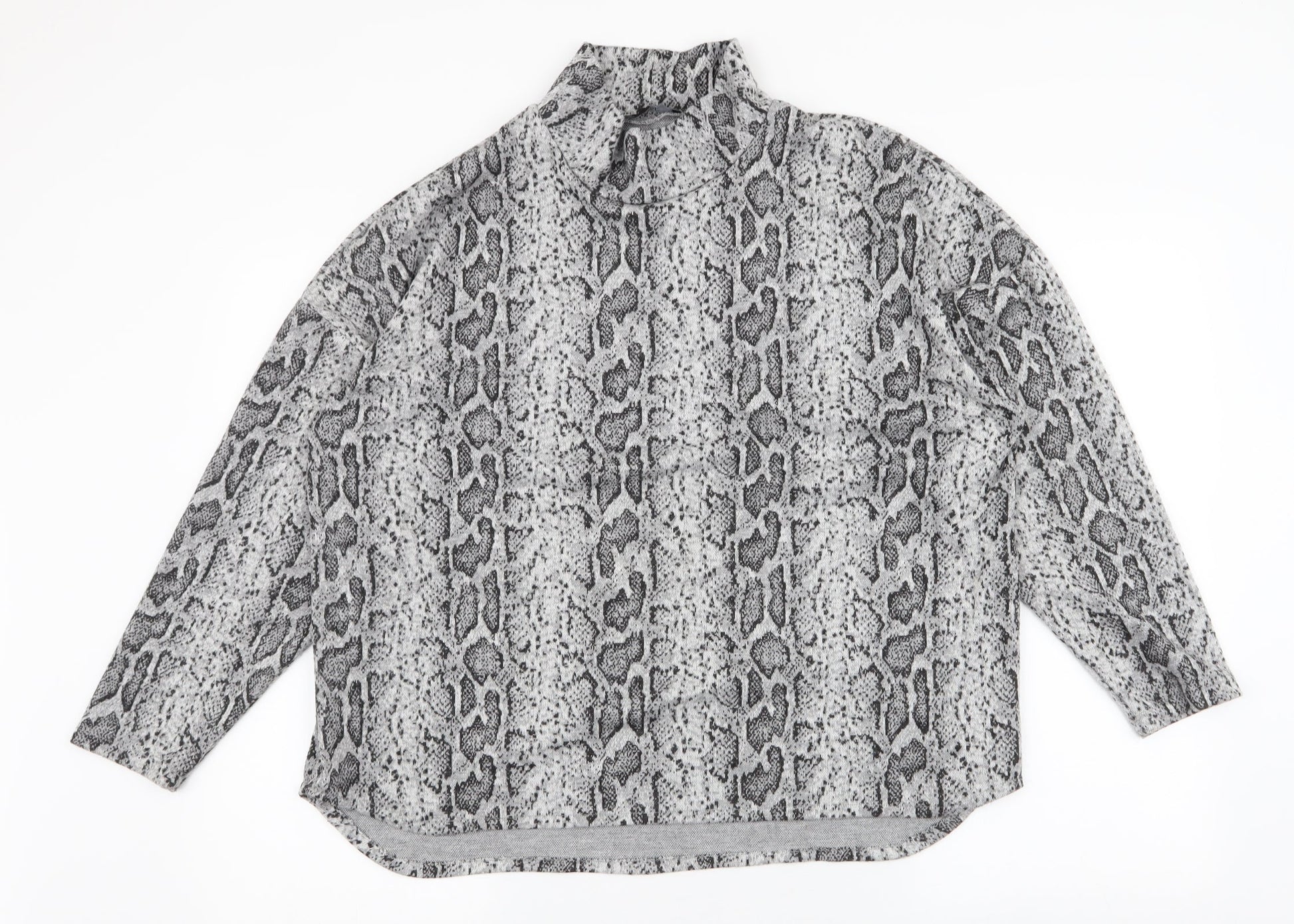 F&F Womens Grey High Neck Animal Print Polyester Pullover Jumper Size 16