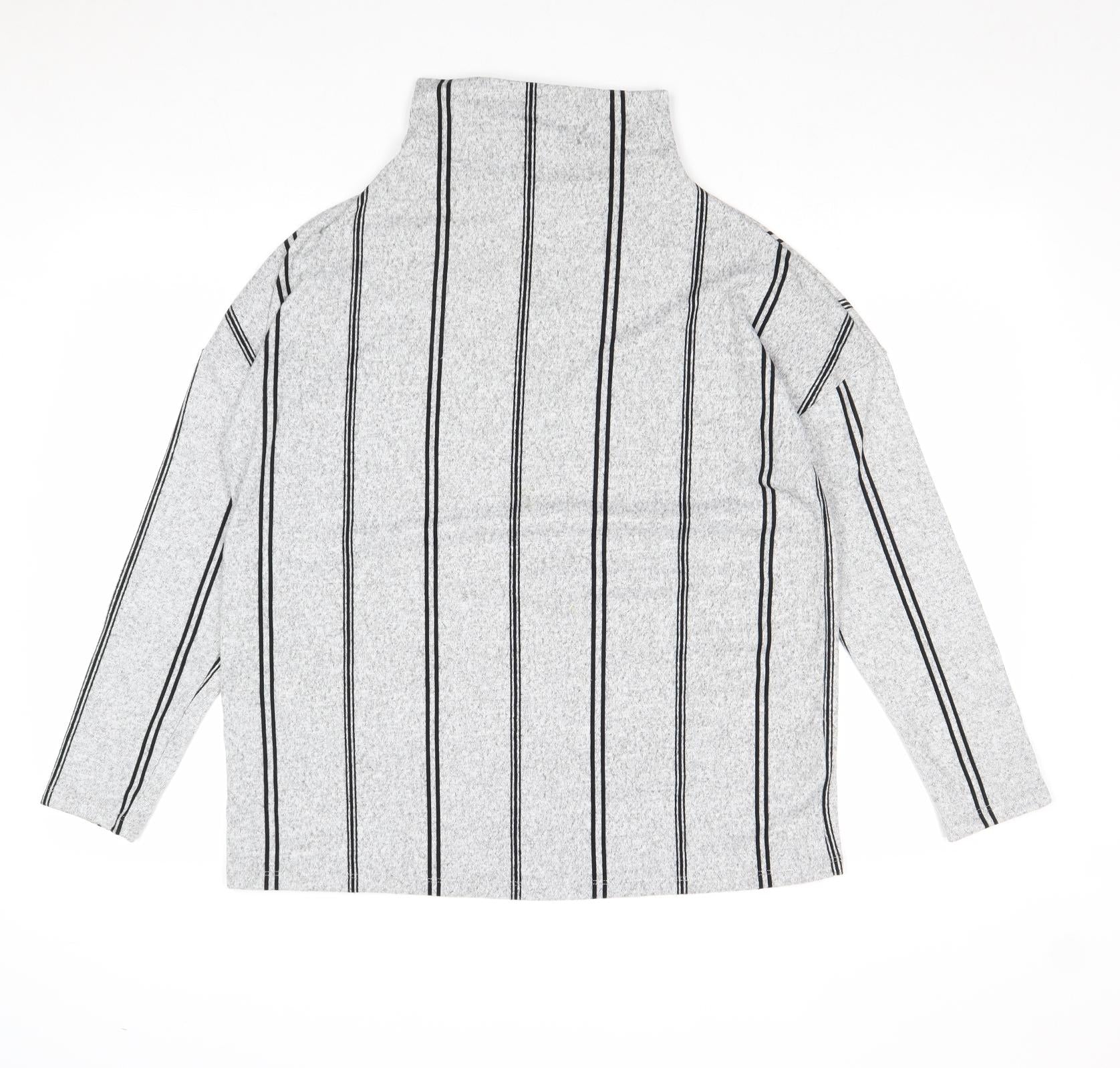F&F Womens Grey High Neck Striped Polyester Pullover Jumper Size 10