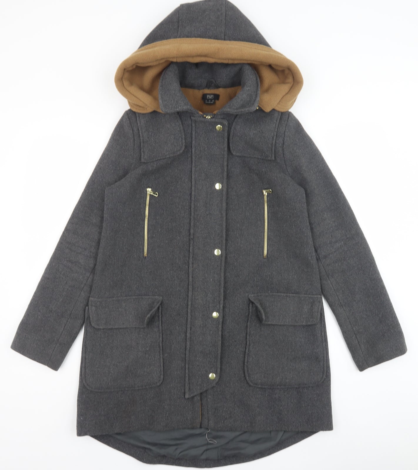 F&F Womens Grey Pea Coat Coat Size 8 Zip