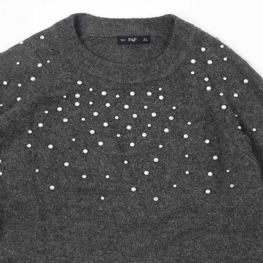 F&F Womens Grey Round Neck Acrylic Pullover Jumper Size 8