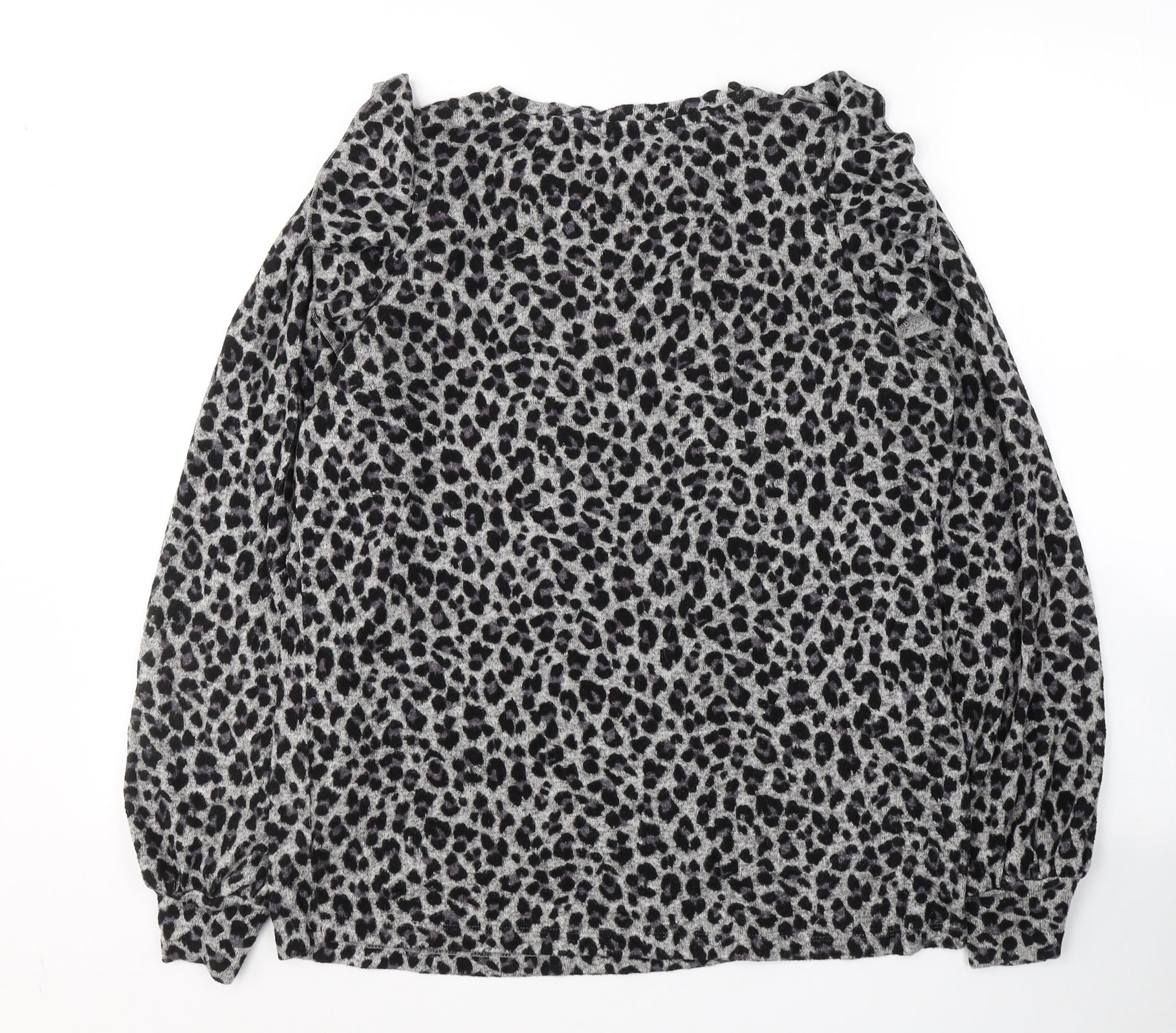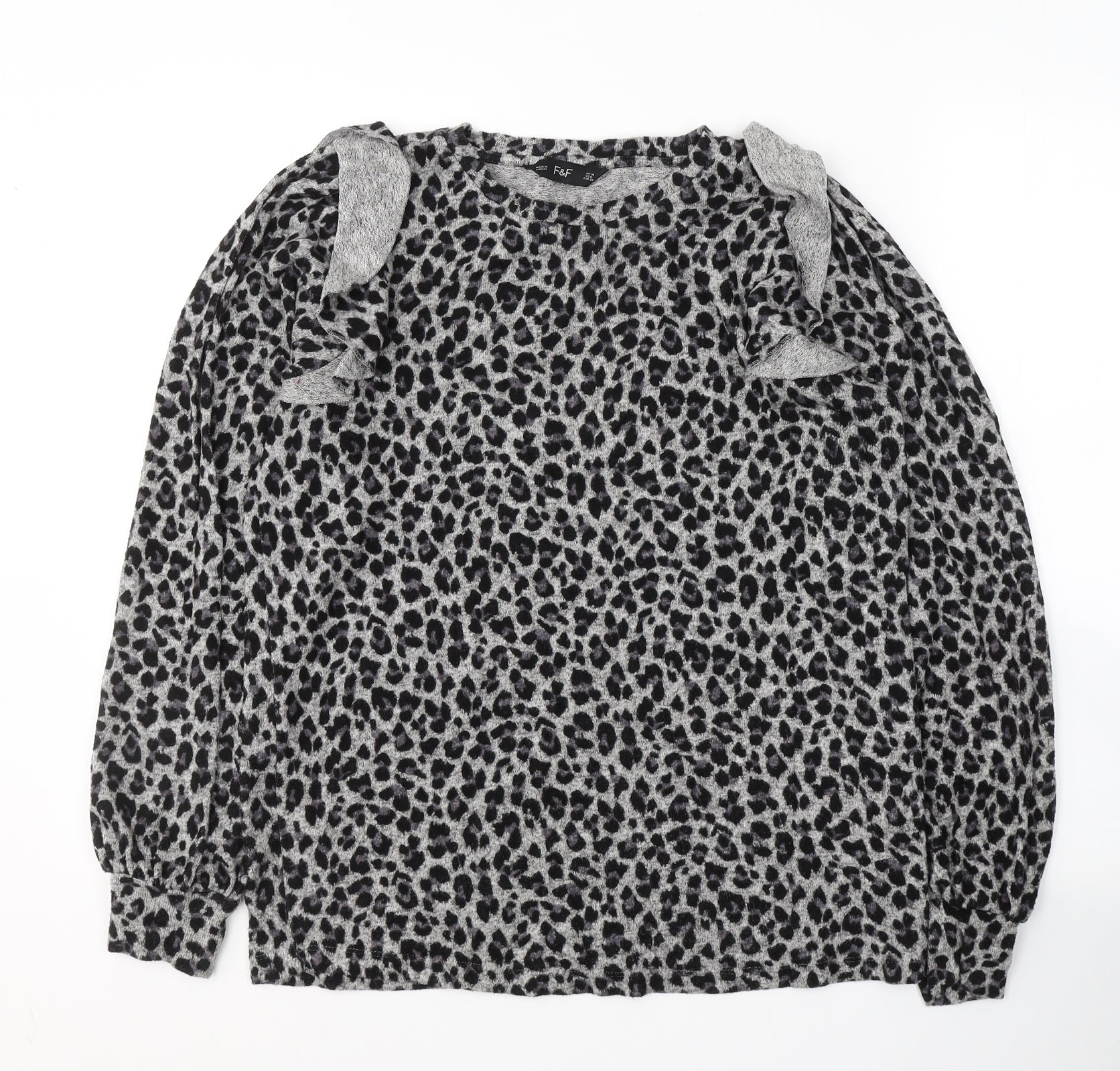F&F Womens Grey Round Neck Animal Print Viscose Pullover Jumper Size 10