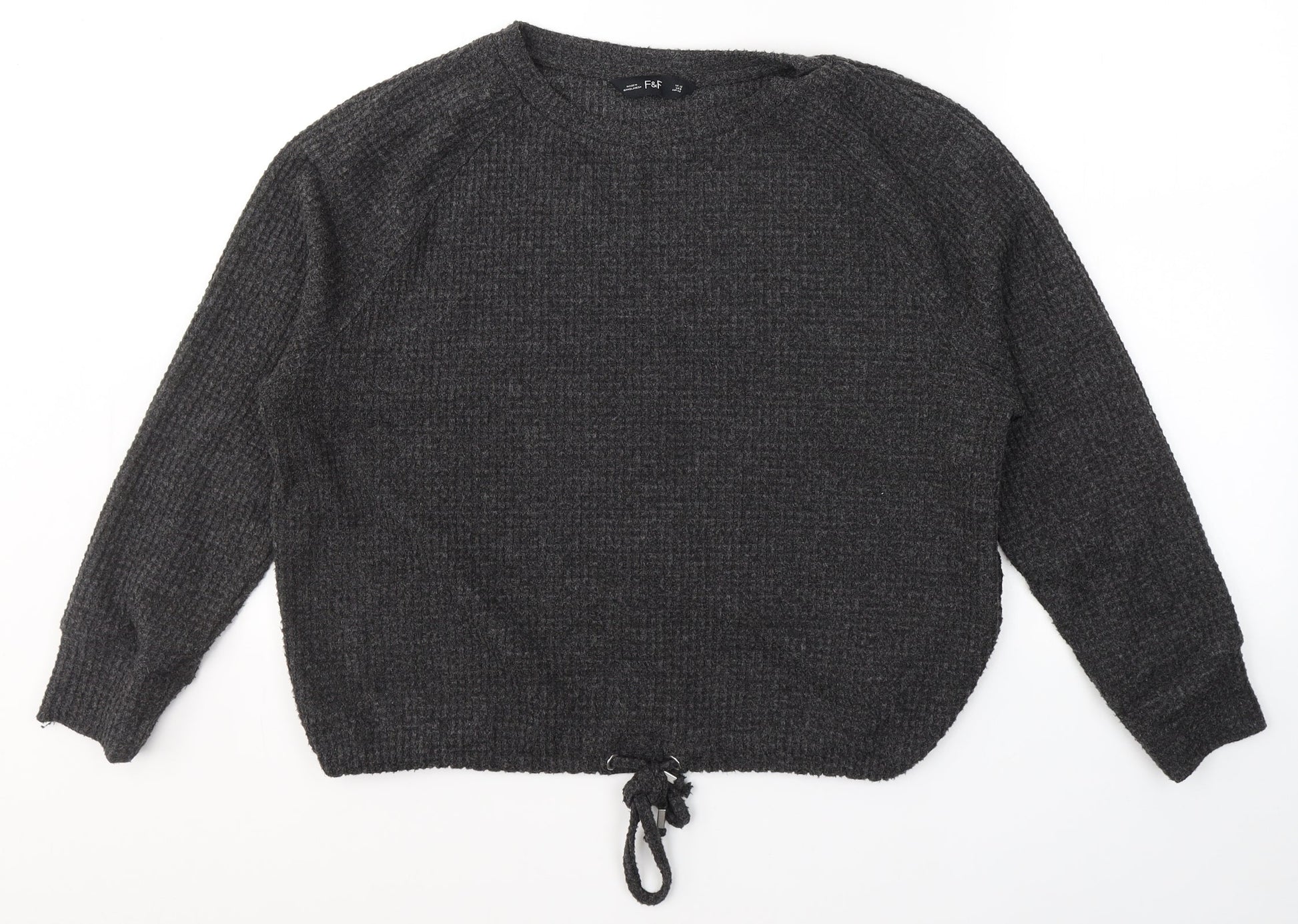 F&F Womens Grey Round Neck Polyester Pullover Jumper Size 12