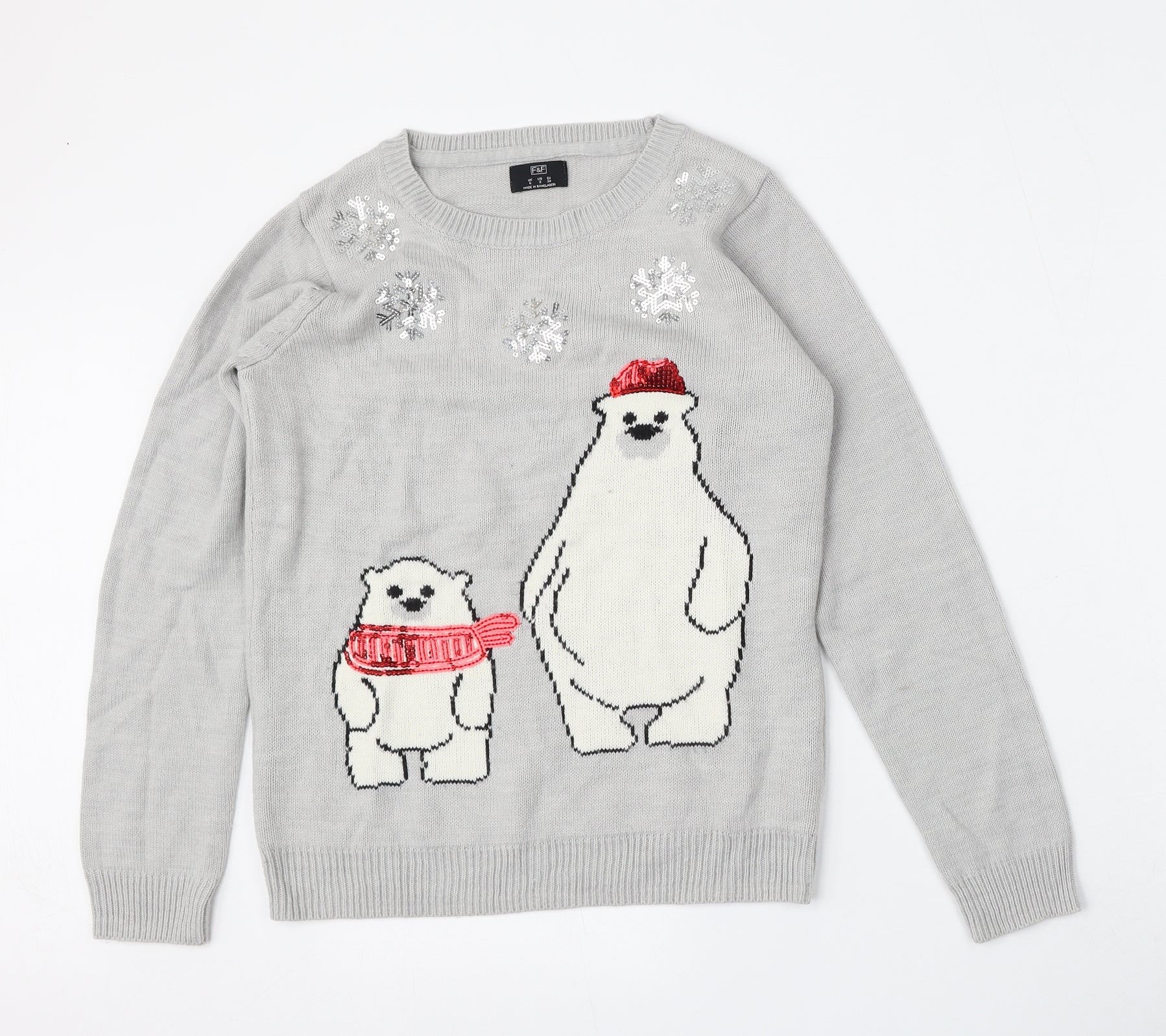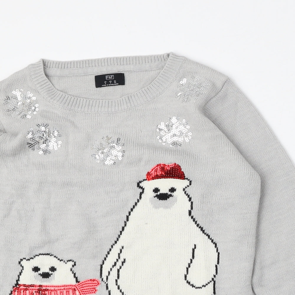 F&F Womens Grey Round Neck Polyester Pullover Jumper Size 6