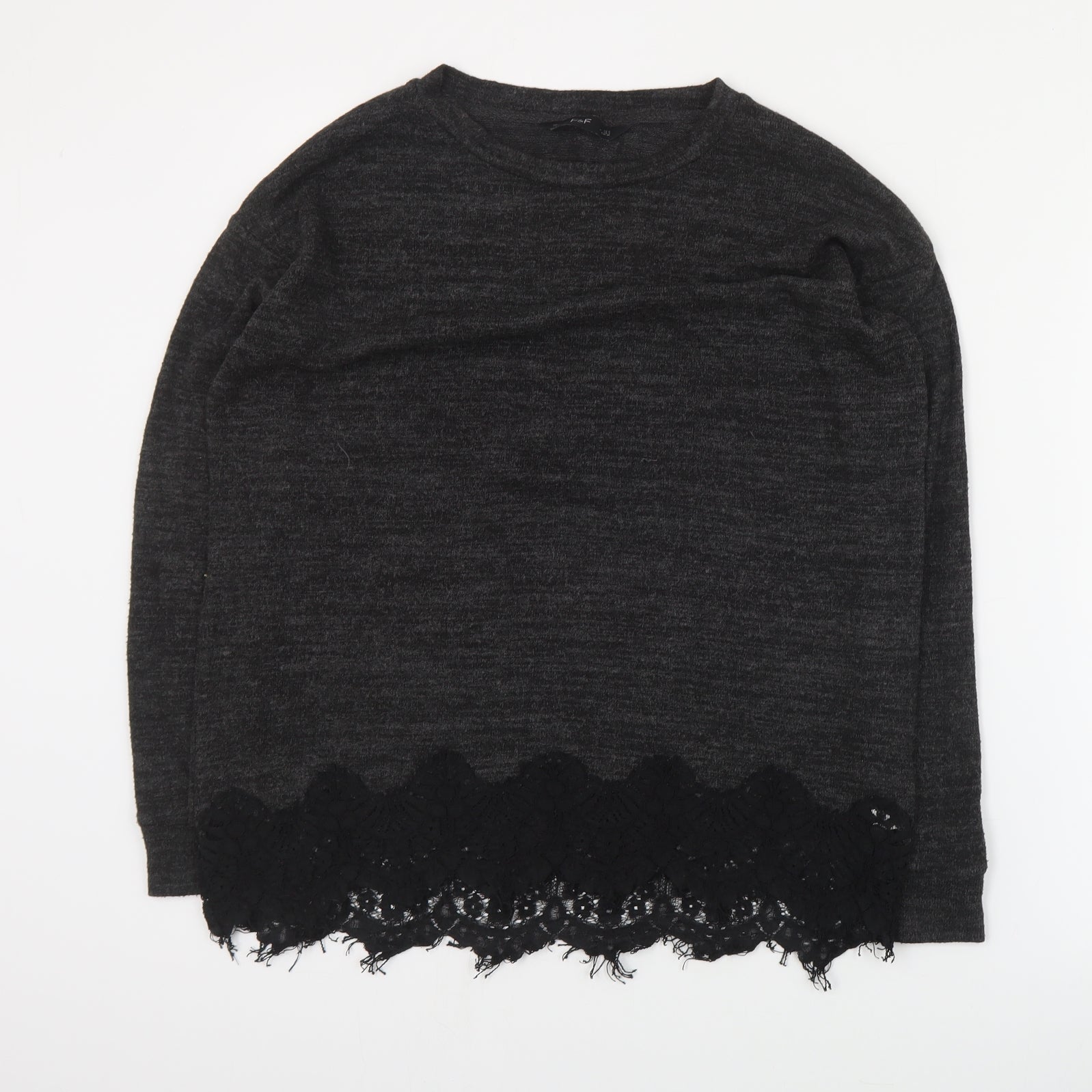 F&F Womens Grey Round Neck Polyester Pullover Jumper Size 6