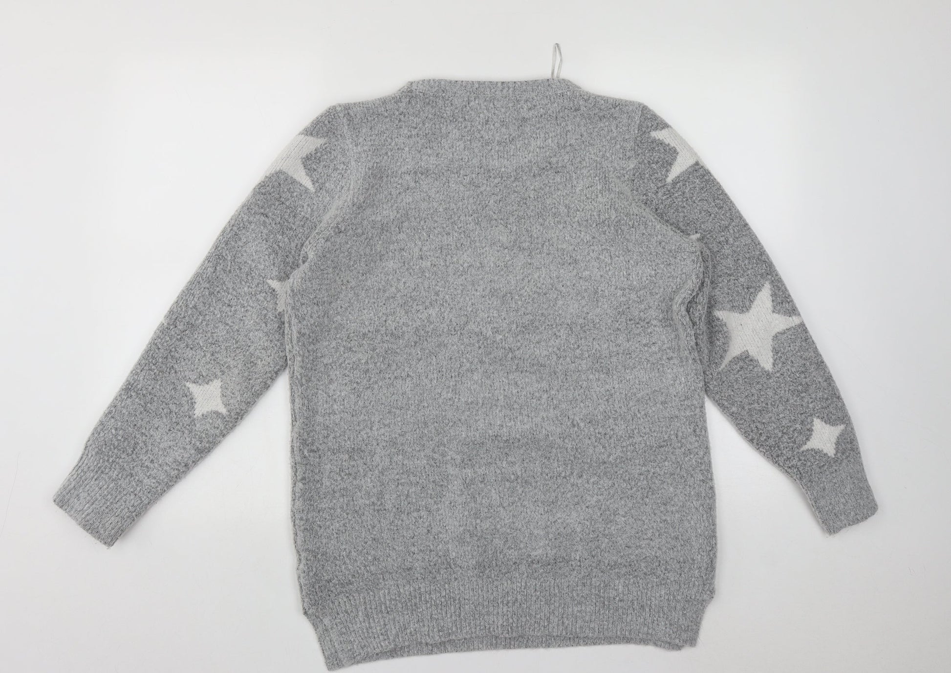 F&F Womens Grey Round Neck Polyester Pullover Jumper Size M - STARS