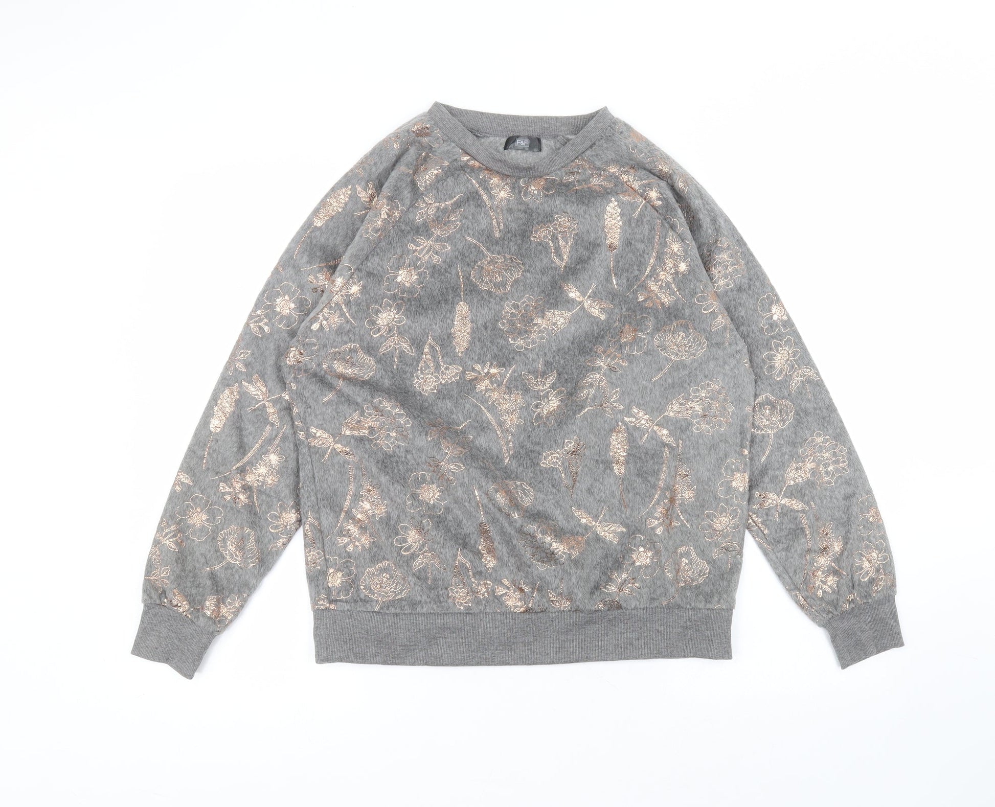 F&F Womens Grey Round Neck Polyester Pullover Jumper Size S