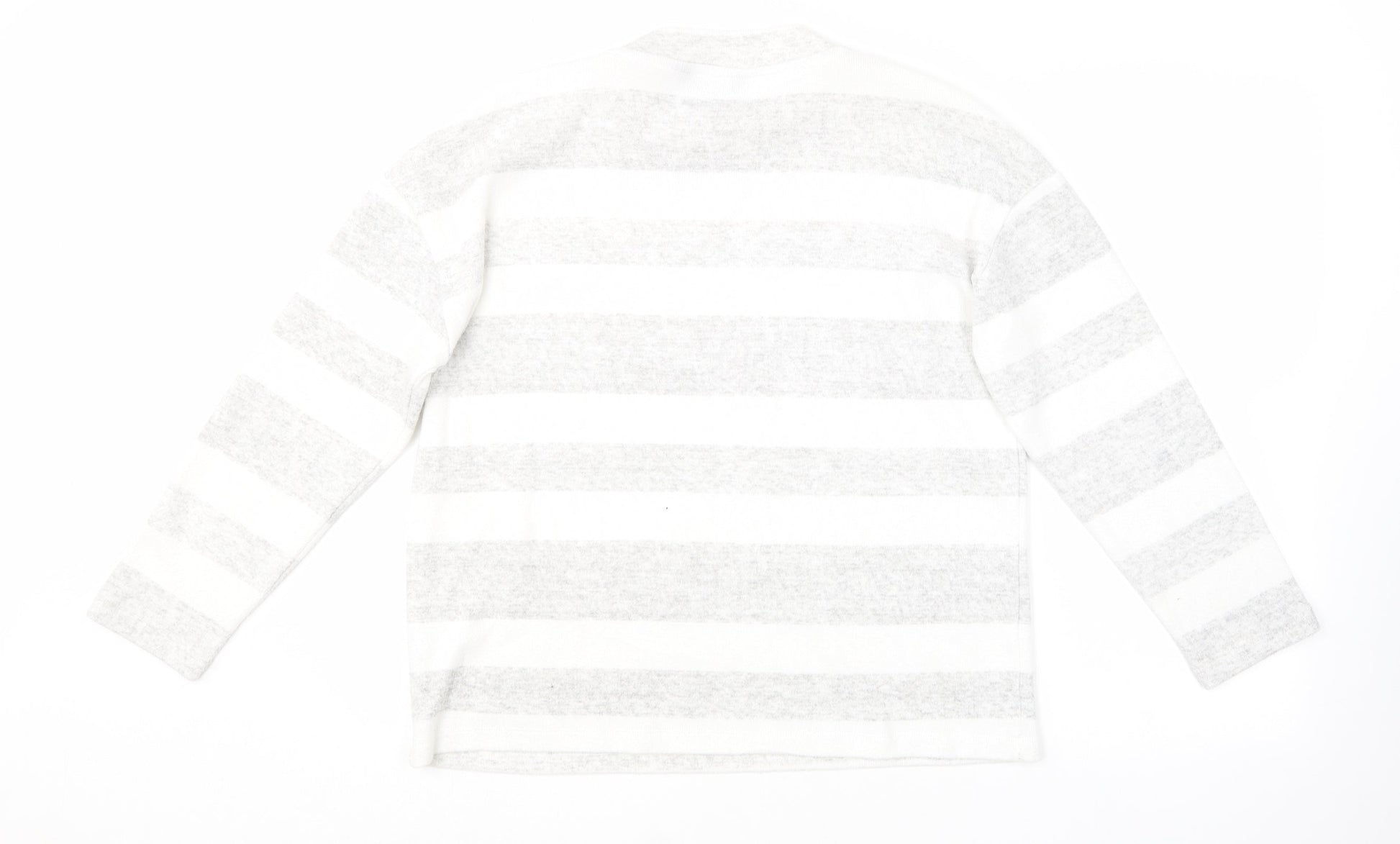 F&F Womens Grey Round Neck Striped Polyester Pullover Jumper Size 10