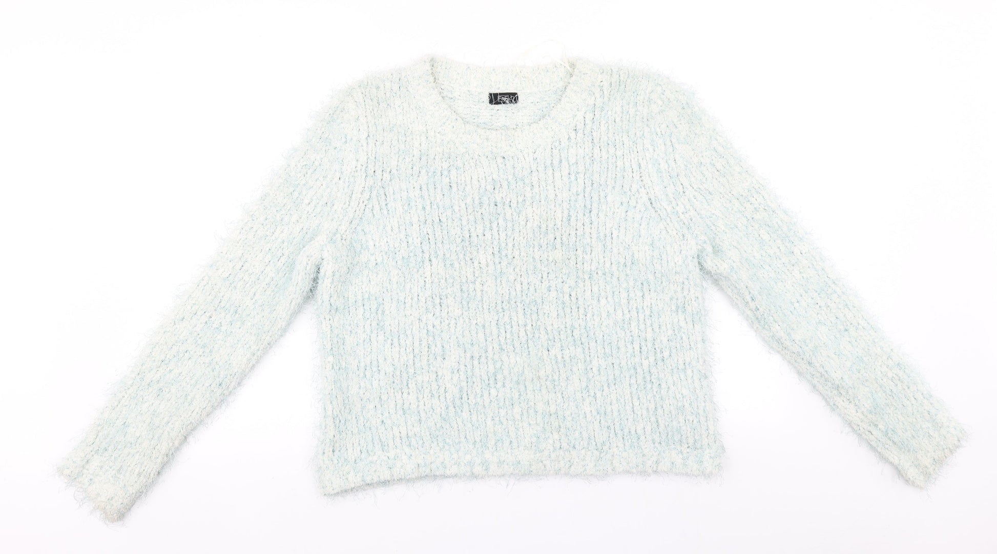F&F Womens Grey Round Neck Striped Polyester Pullover Jumper Size 14