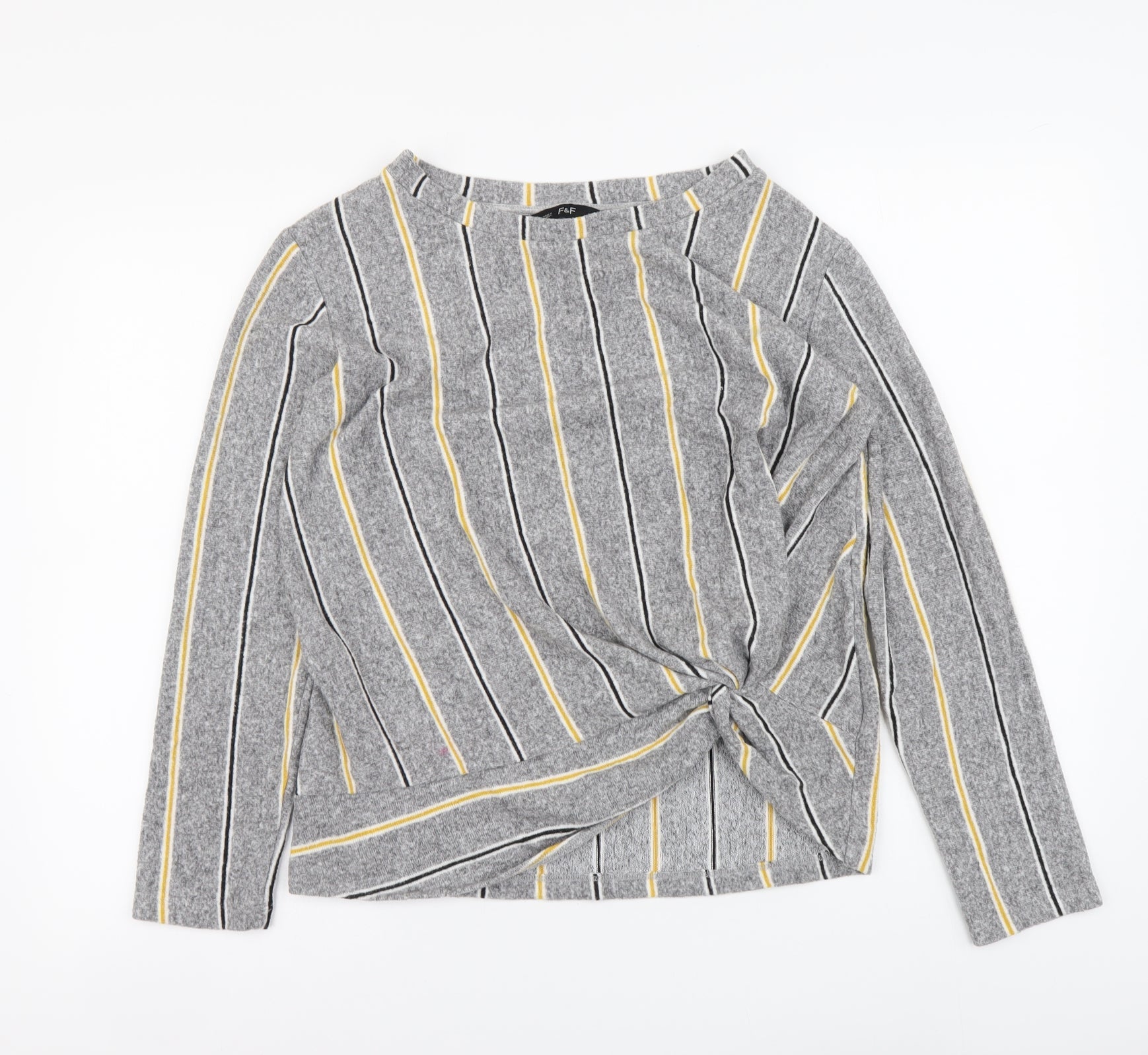 F&F Womens Grey Round Neck Striped Polyester Pullover Jumper Size 12
