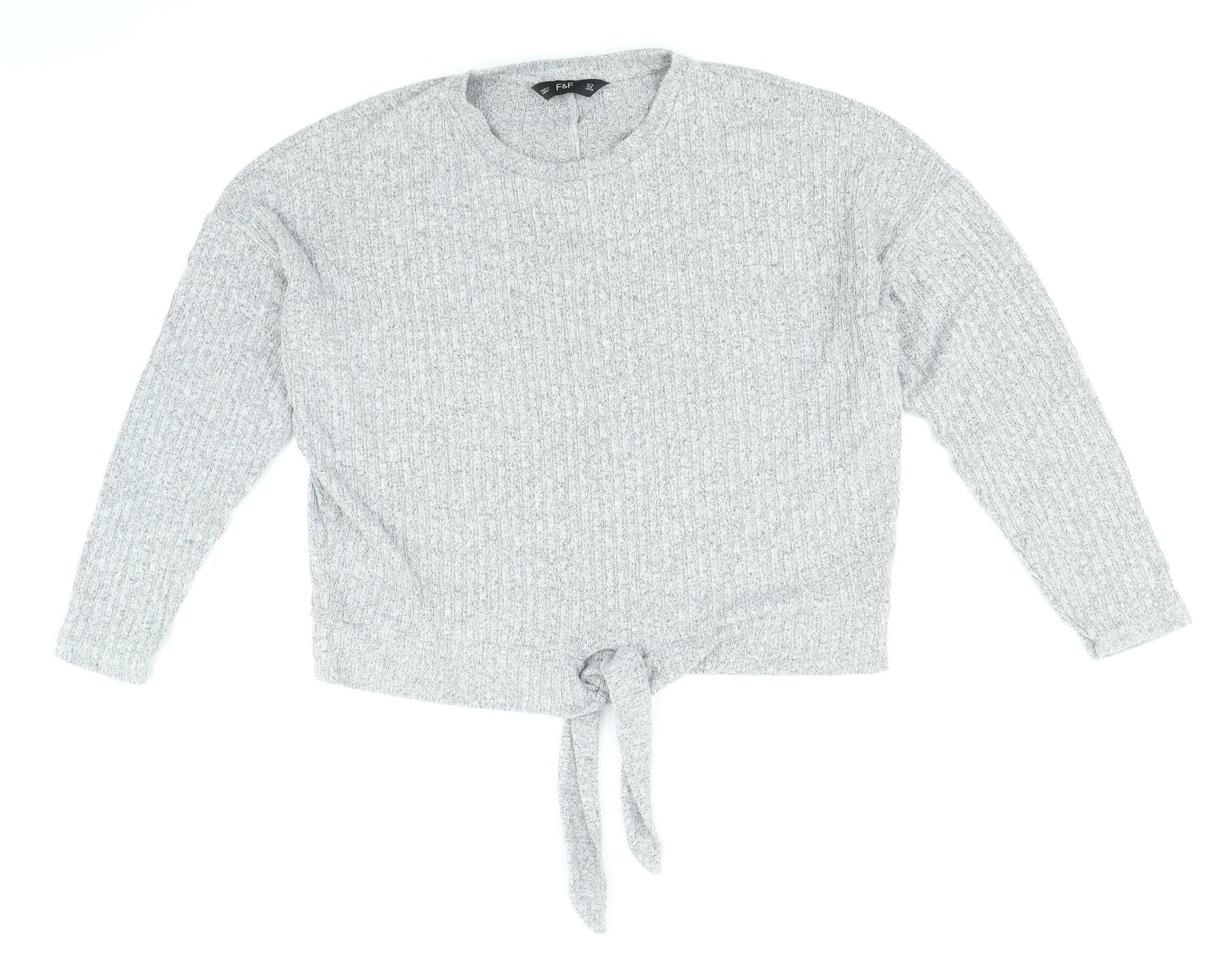 F&F Womens Grey Round Neck Viscose Pullover Jumper Size 10