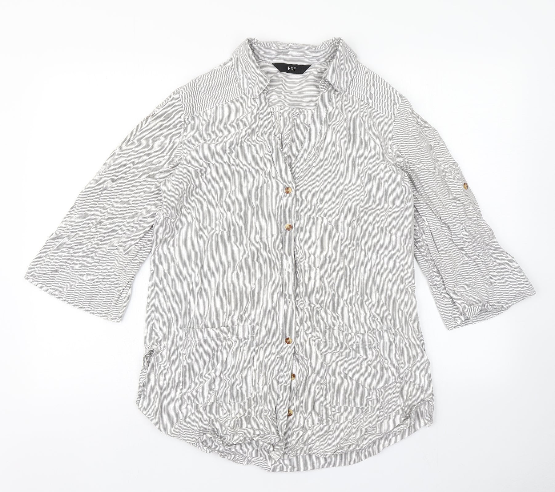 F&F Womens Grey Striped Basic Button-Up Size 8
