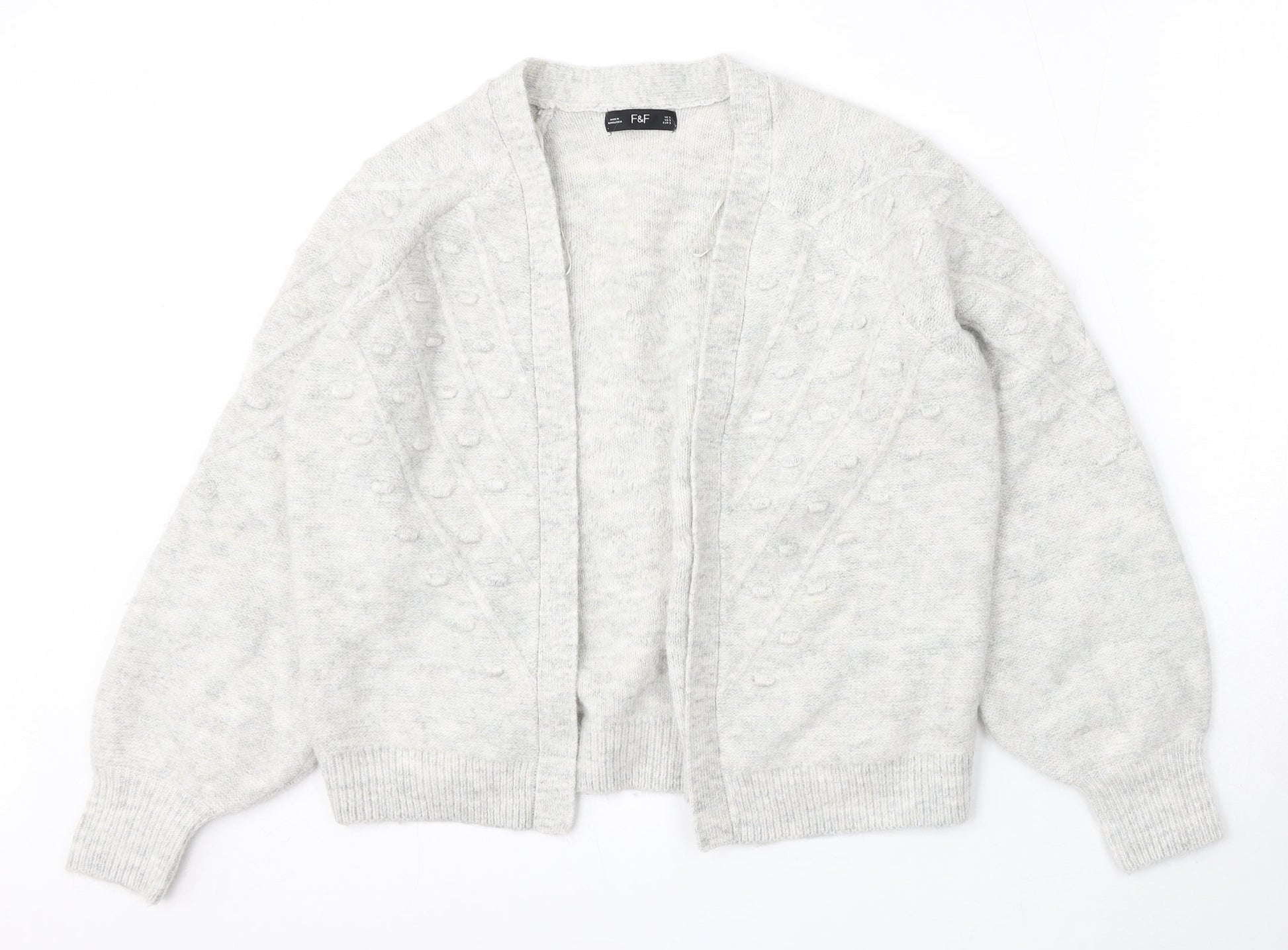 F&F Womens Grey V-Neck Polyester Cardigan Jumper Size S