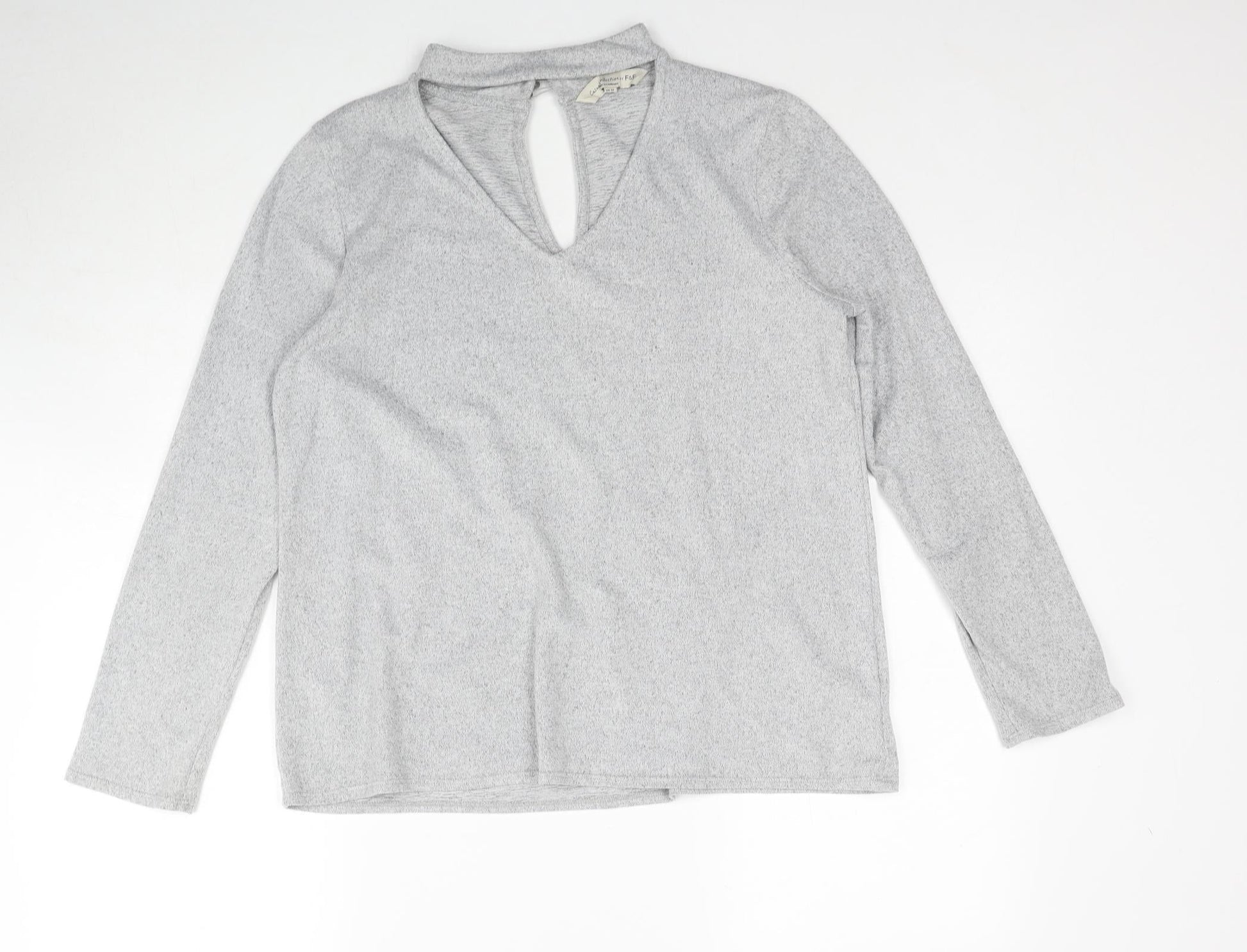 F&F Womens Grey V-Neck Polyester Pullover Jumper Size 14