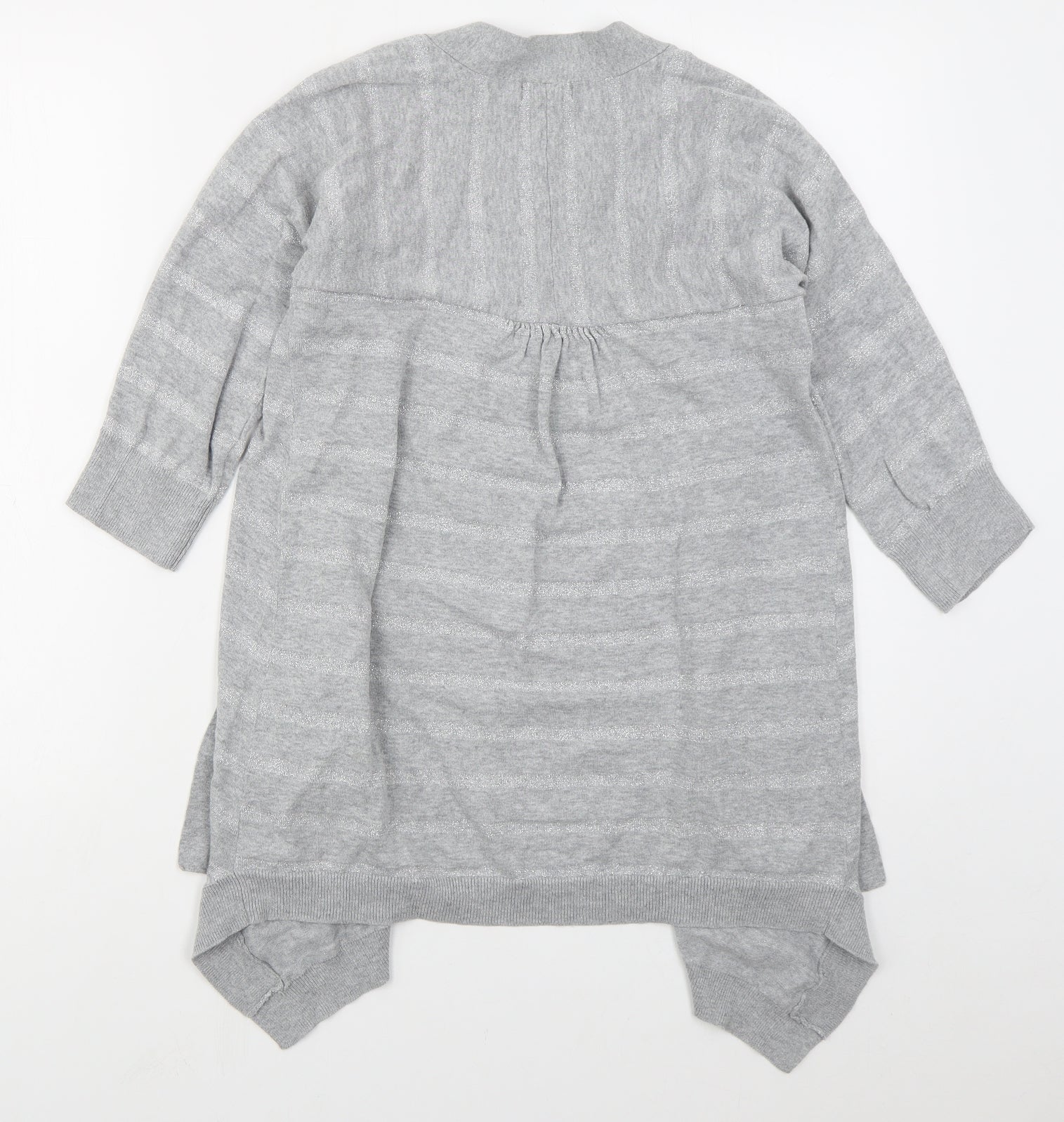 F&F Womens Grey V-Neck Striped Cotton Cardigan Jumper Size 8