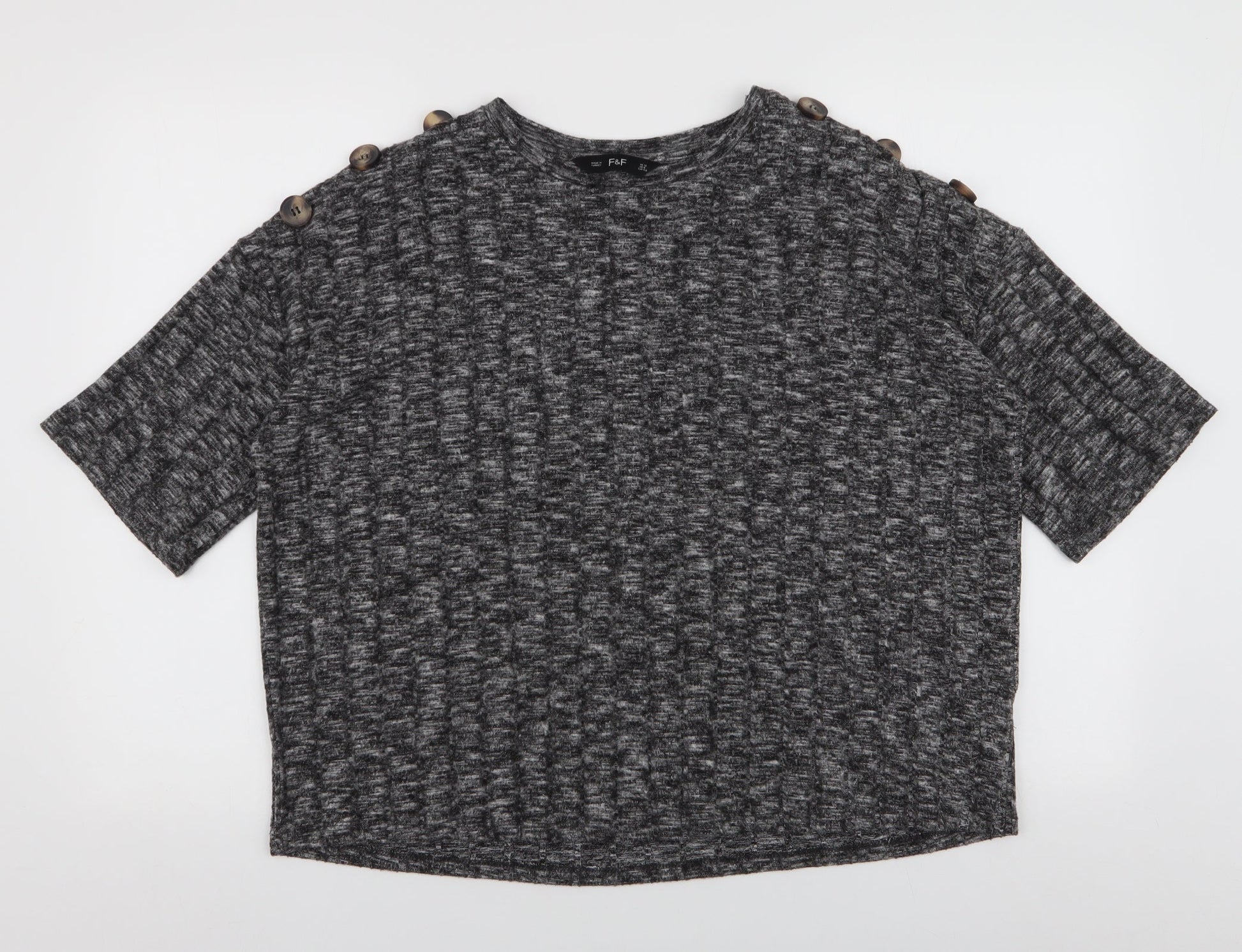 F&F Womens Grey Viscose Basic Blouse Size 12 Round Neck