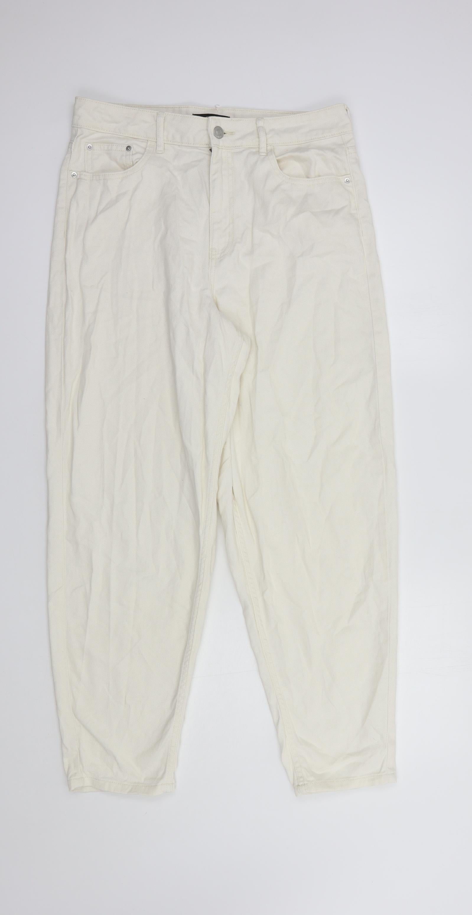 F&F Womens Ivory Cotton Mom Jeans Size 10 L28 in Regular Button