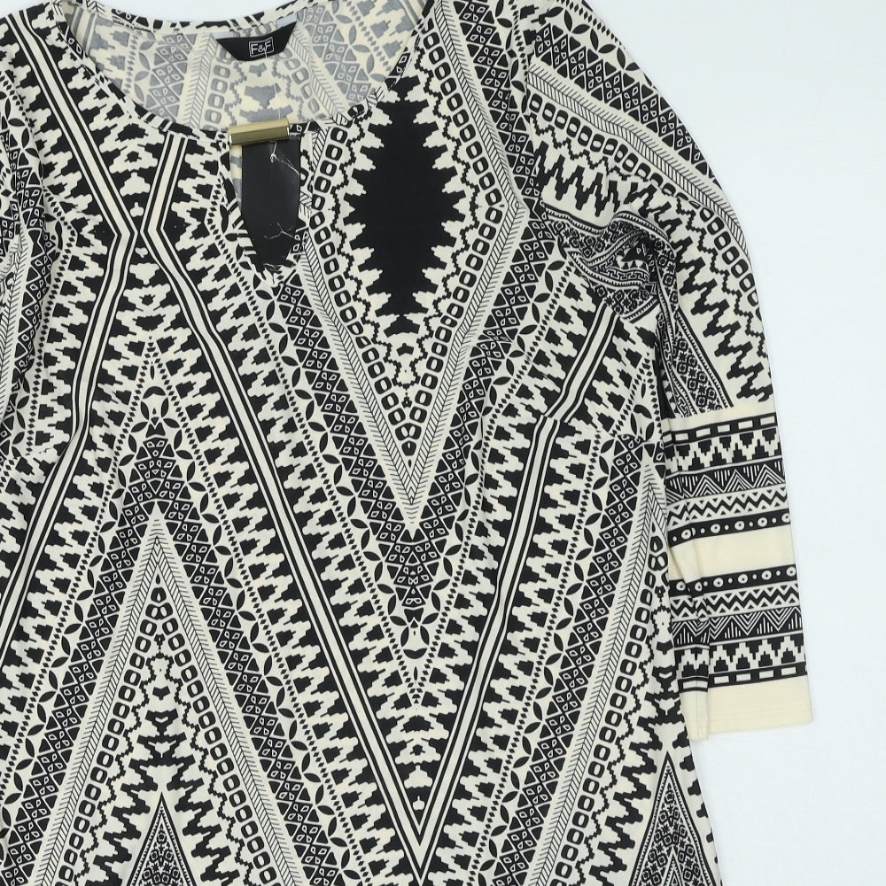 F&F Womens Ivory Geometric Polyester Shirt Dress Size 14 Round Neck
