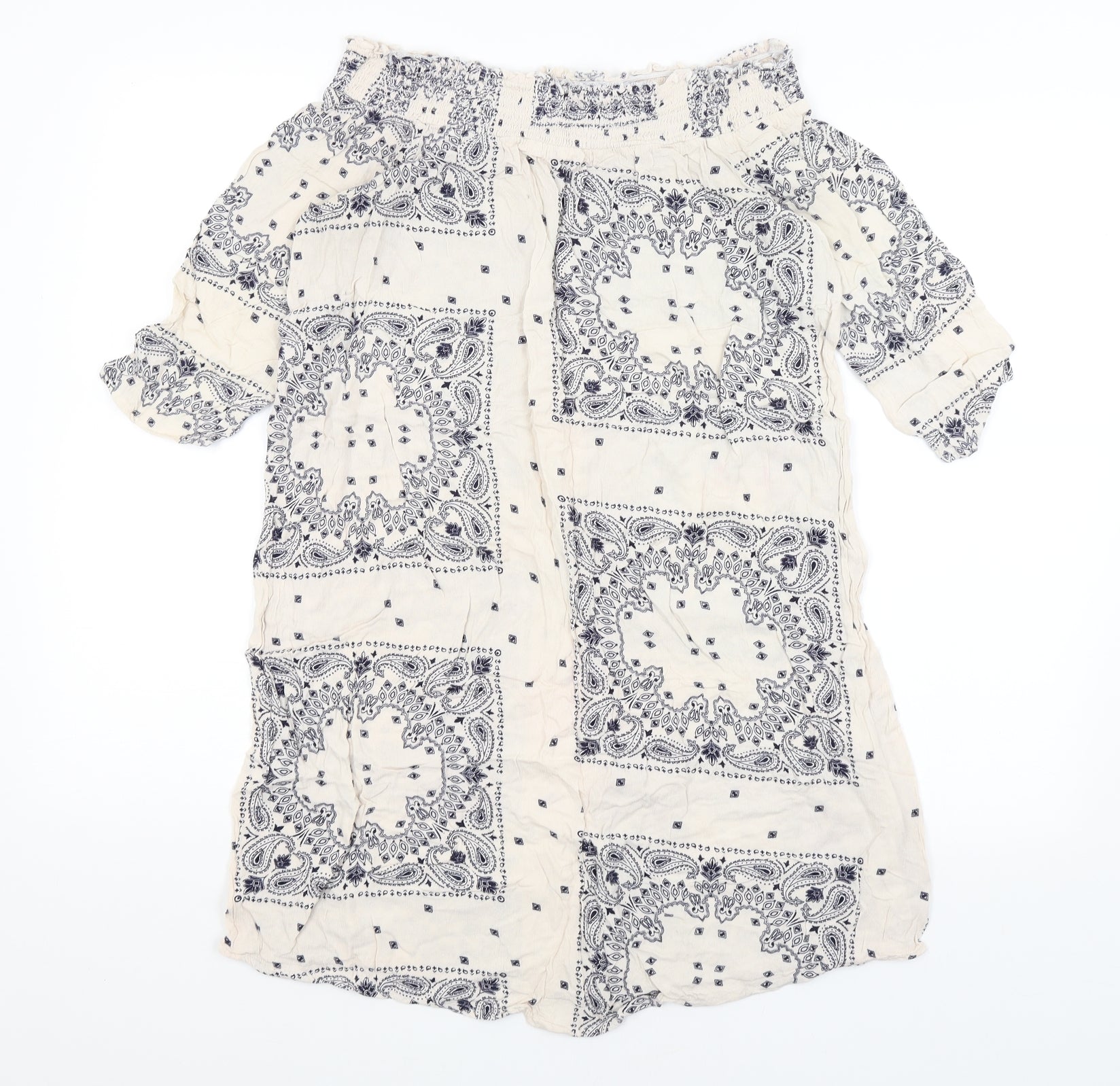 F&F Womens Ivory Paisley Tunic T-Shirt Size 6