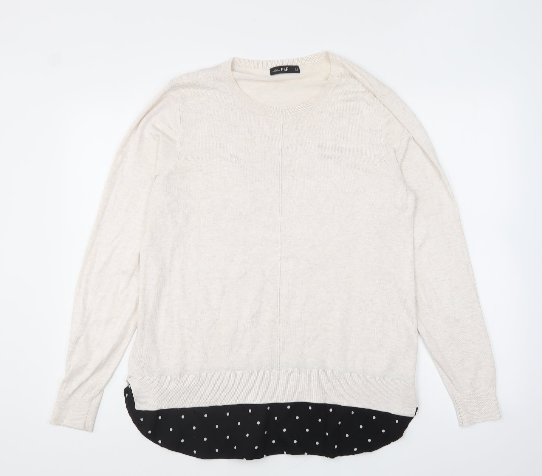 F&F Womens Ivory Round Neck Polka Dot Viscose Pullover Jumper Size 14