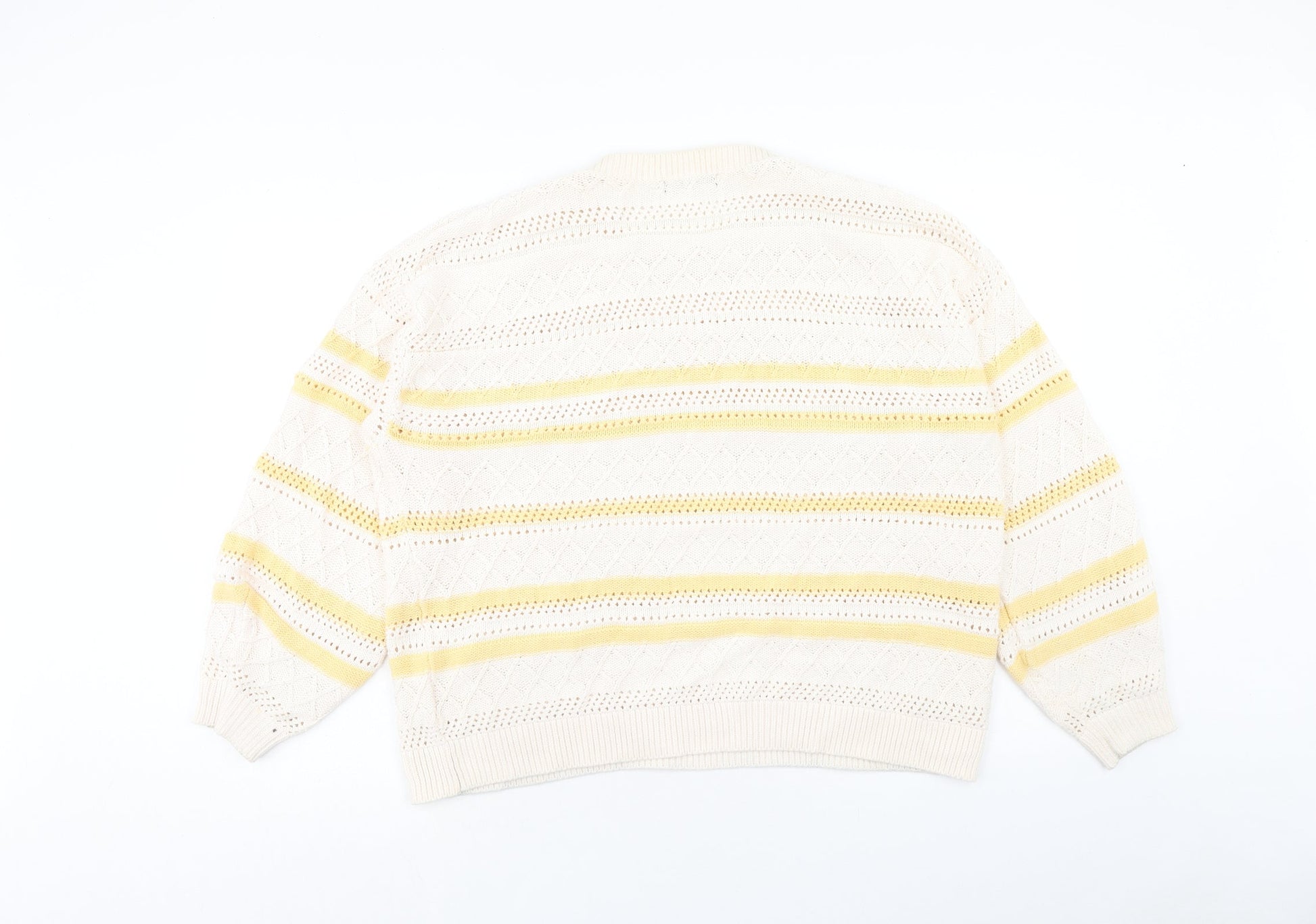 F&F Womens Ivory Round Neck Striped Cotton Pullover Jumper Size L