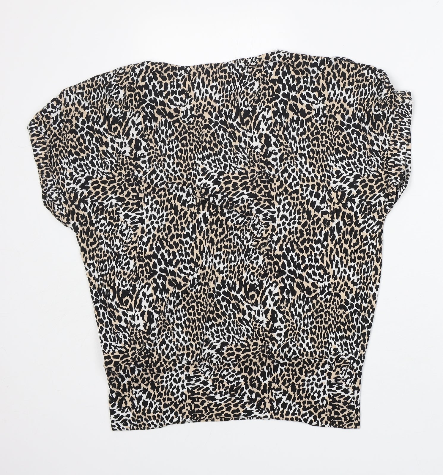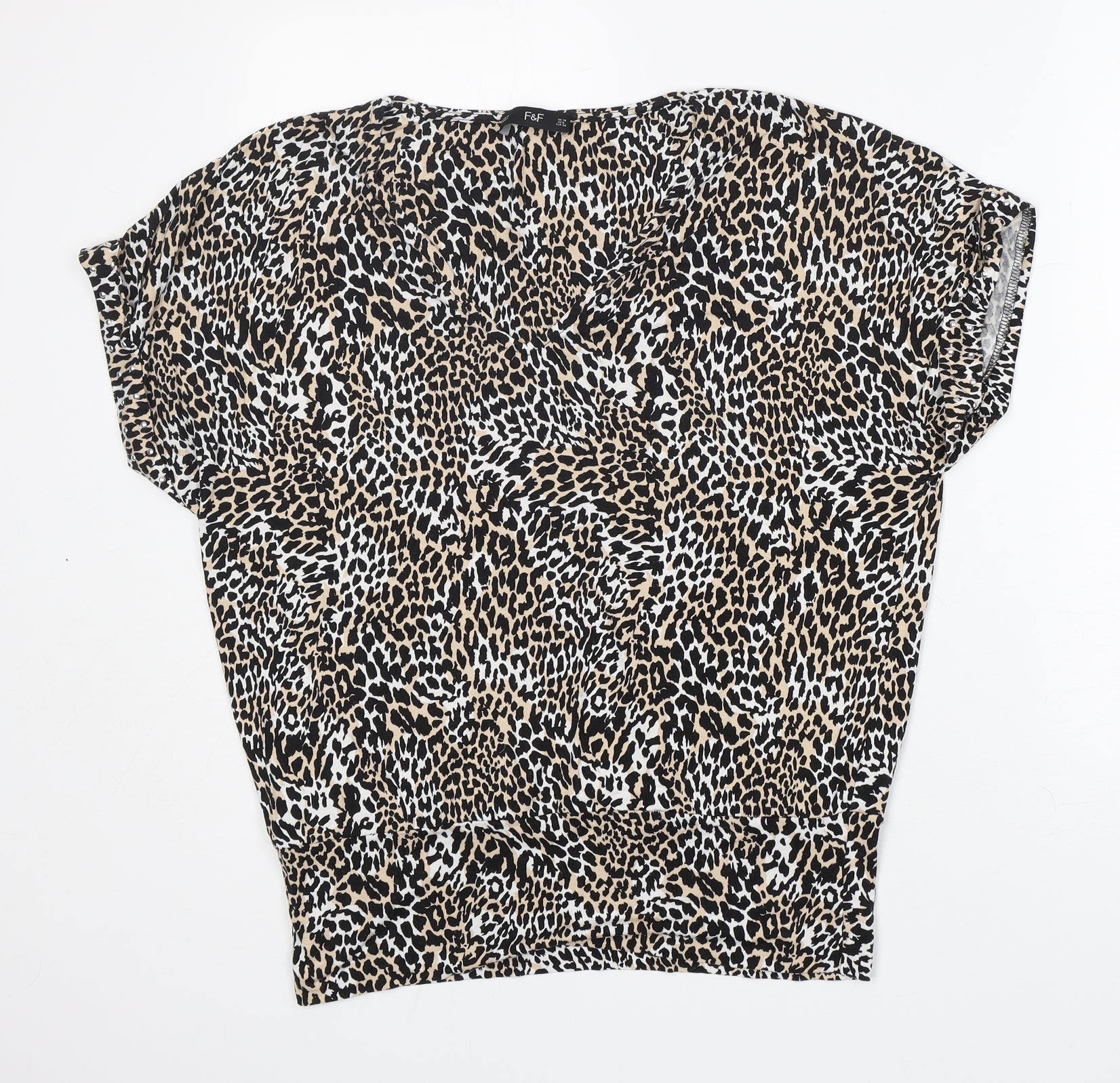 F&F Womens Multicoloured Animal Print Viscose Basic T-Shirt Size 10 V-Neck - very soft