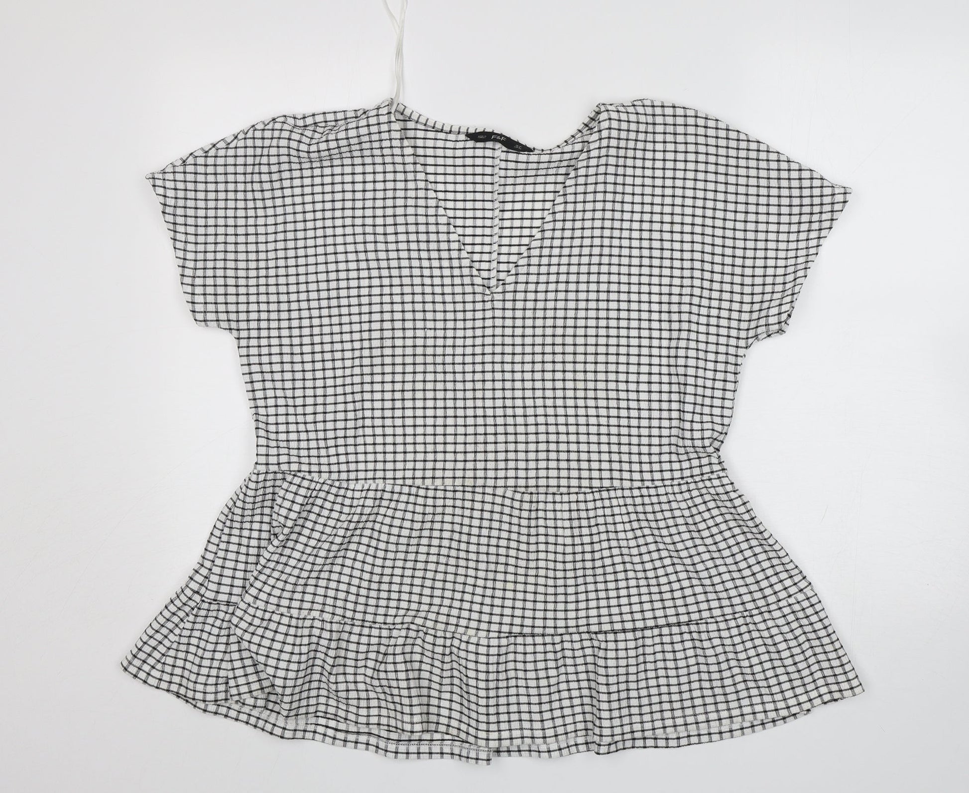 F&F Womens Multicoloured Check Polyester Basic Blouse Size 10 V-Neck