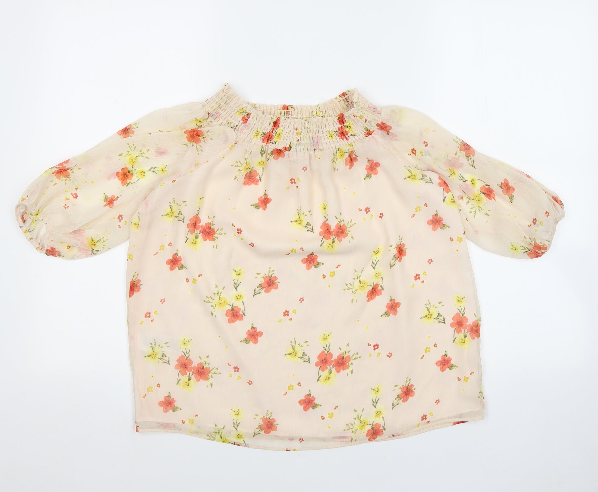 F&F Womens Multicoloured Floral Polyester Basic Blouse Size 10 Round Neck