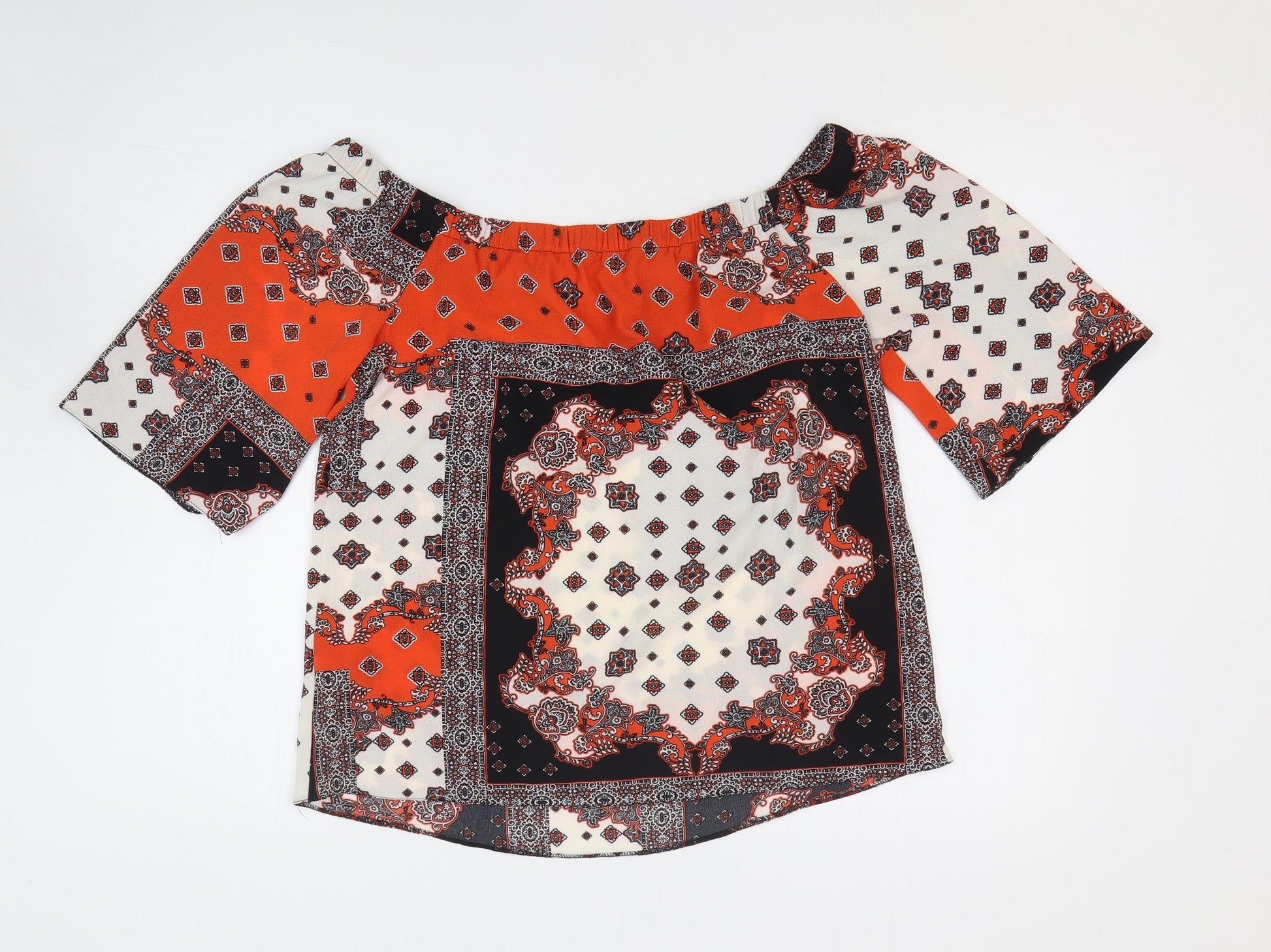 F&F Womens Multicoloured Geometric Polyester Basic Blouse Size 10 Off the Shoulder
