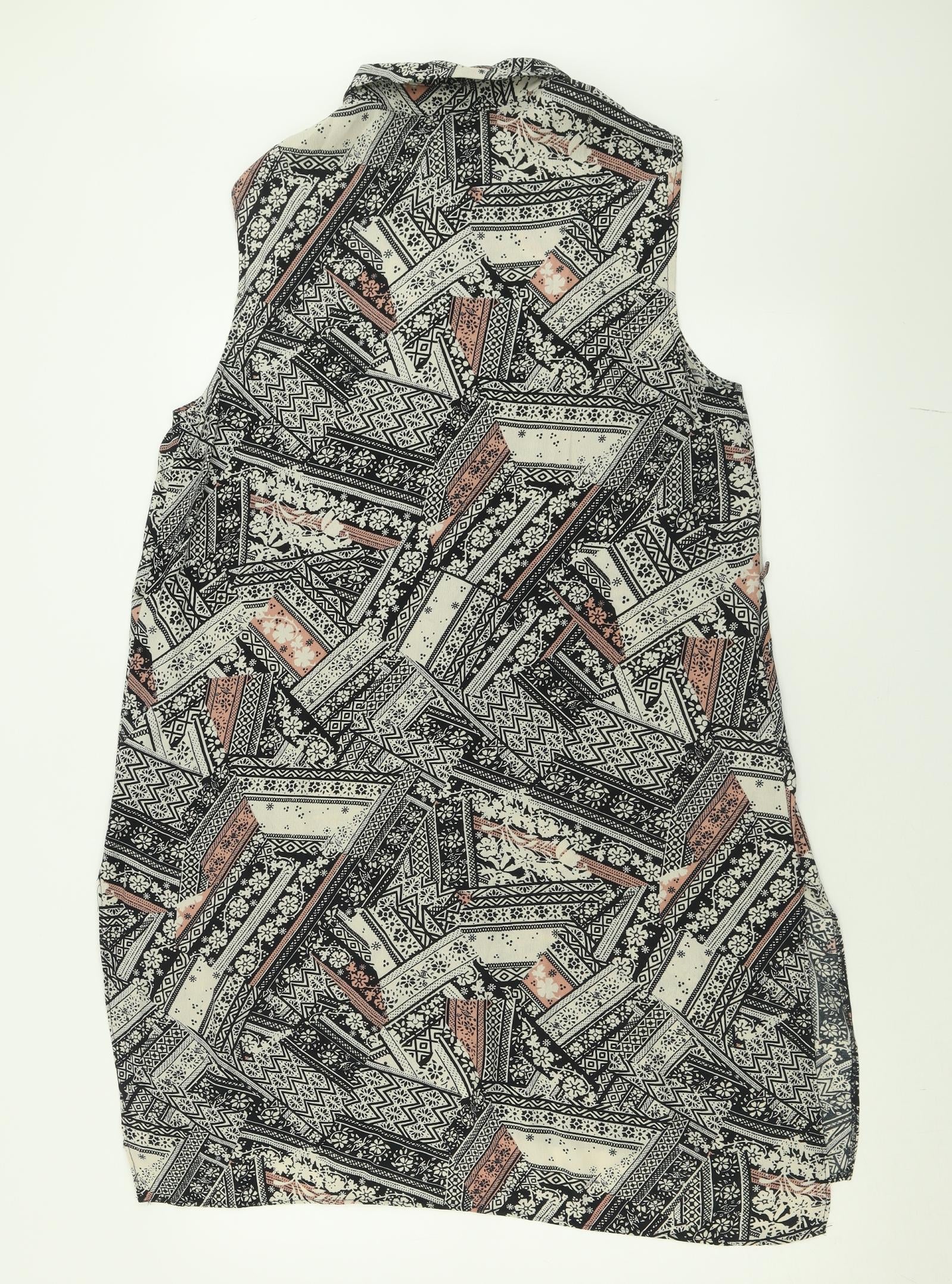 F&F Womens Multicoloured Geometric Viscose A-Line Size 14 Collared Button