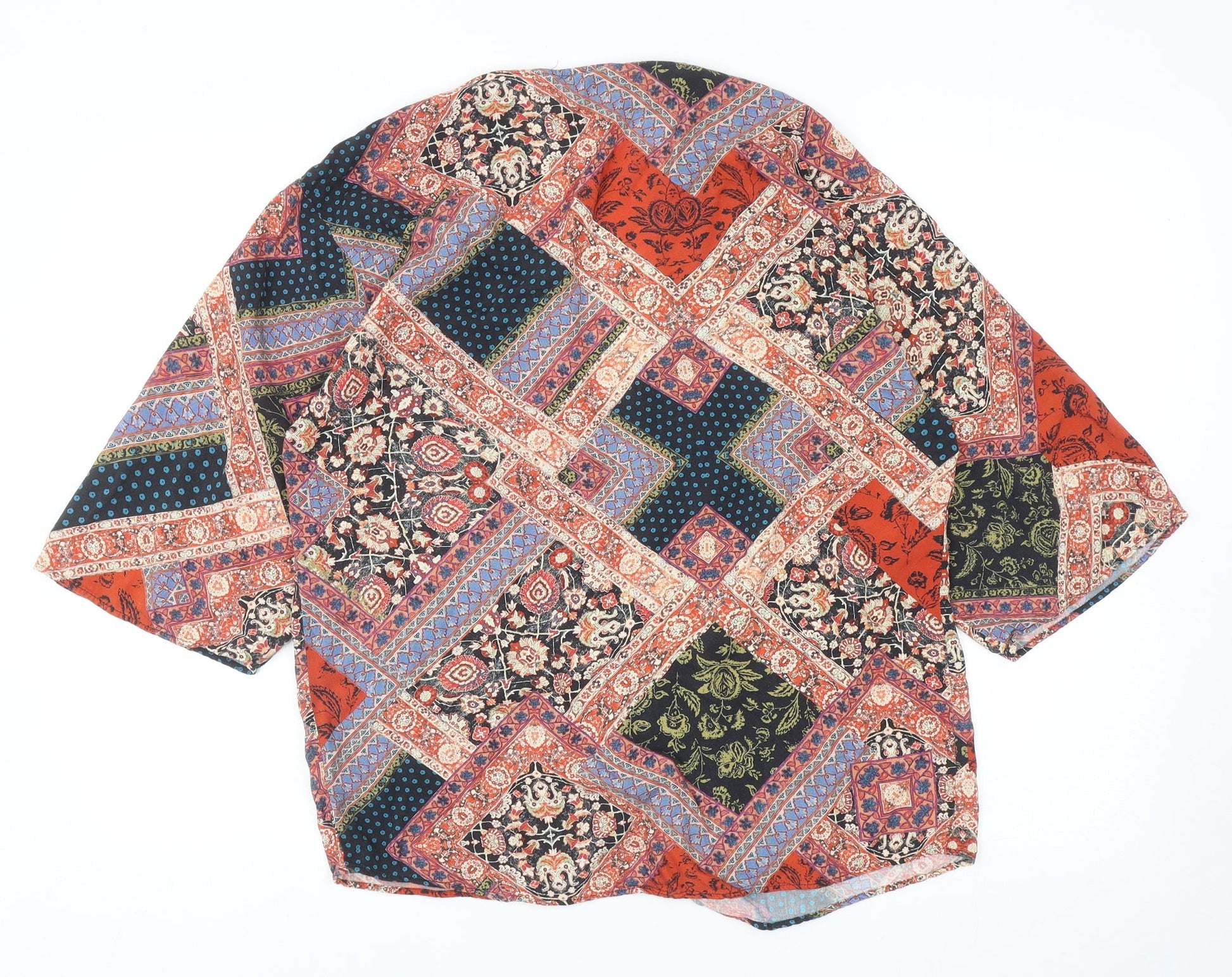 F&F Womens Multicoloured Geometric Viscose Kimono Blouse Size 8 V-Neck