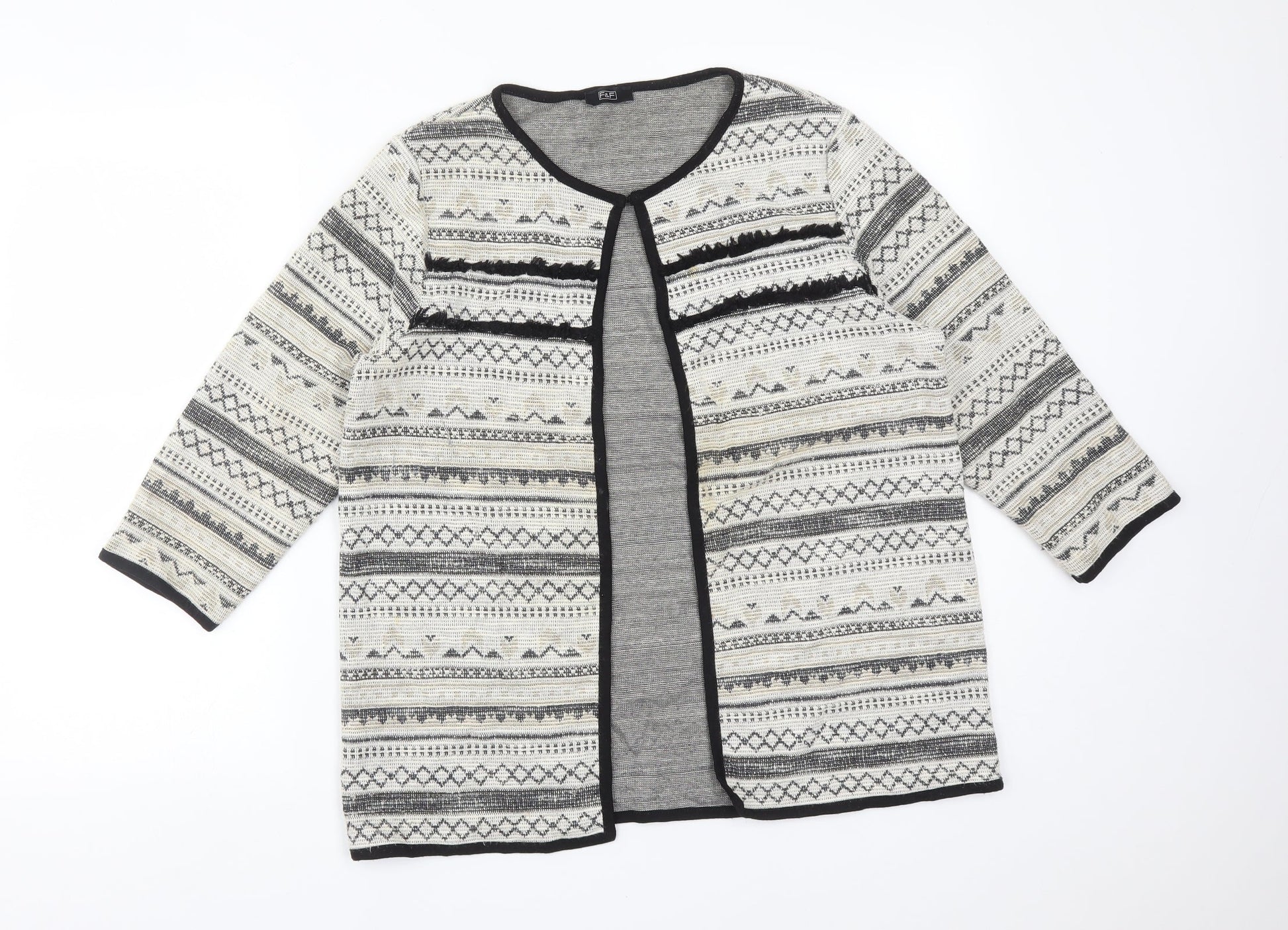 F&F Womens Multicoloured Round Neck Fair Isle Cotton Cardigan Jumper Size 10