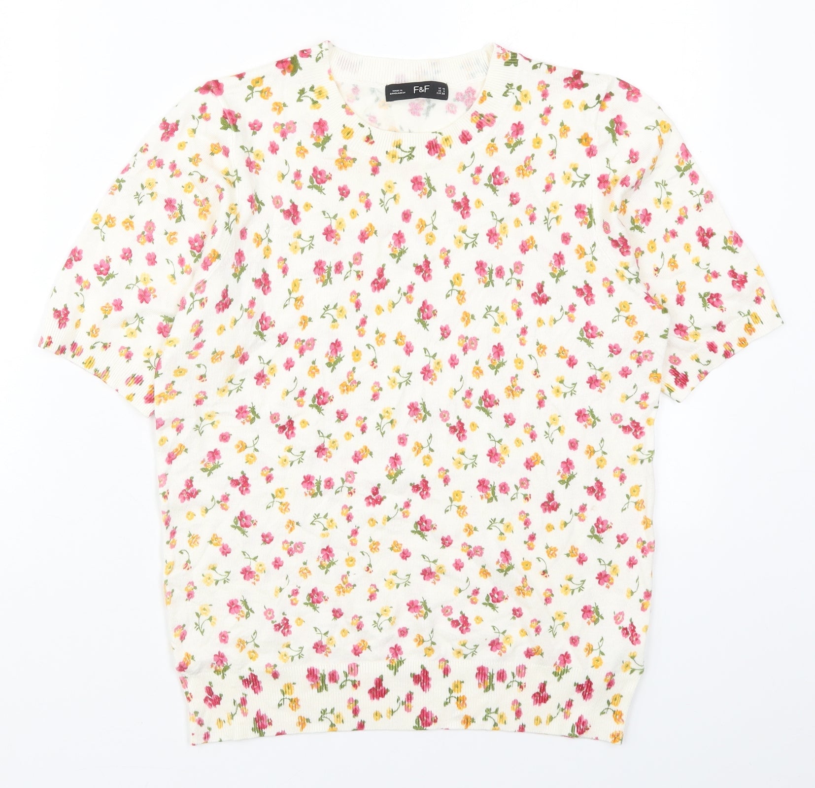 F&F Womens Multicoloured Round Neck Floral Viscose Pullover Jumper Size 10